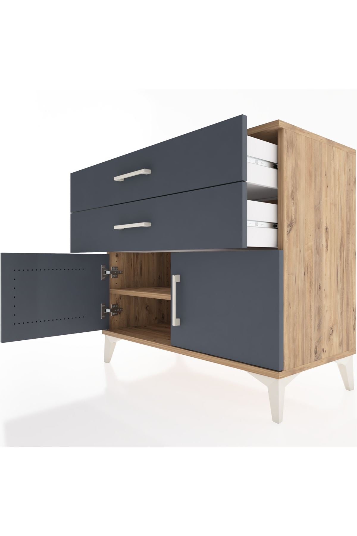 Hyperion Şifonyer Tek Raflı 2 Çekmeceli 2 Kapaklı 88x44x80 Çam-Antrasit