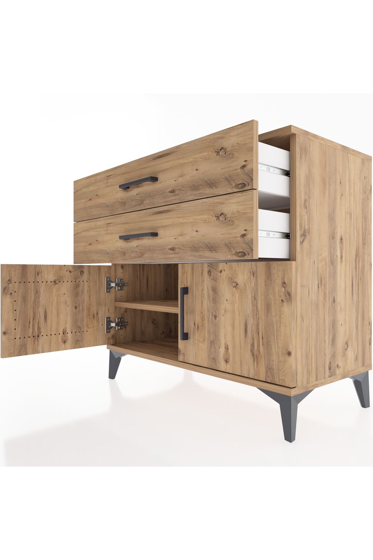 Hyperion Şifonyer Tek Raflı 2 Çekmeceli 2 Kapaklı 88x44x80 Çam-Çam – Fonksiyonel ve Şık Depolama Çözümü