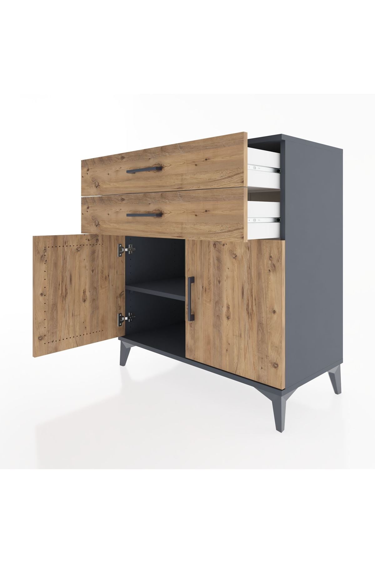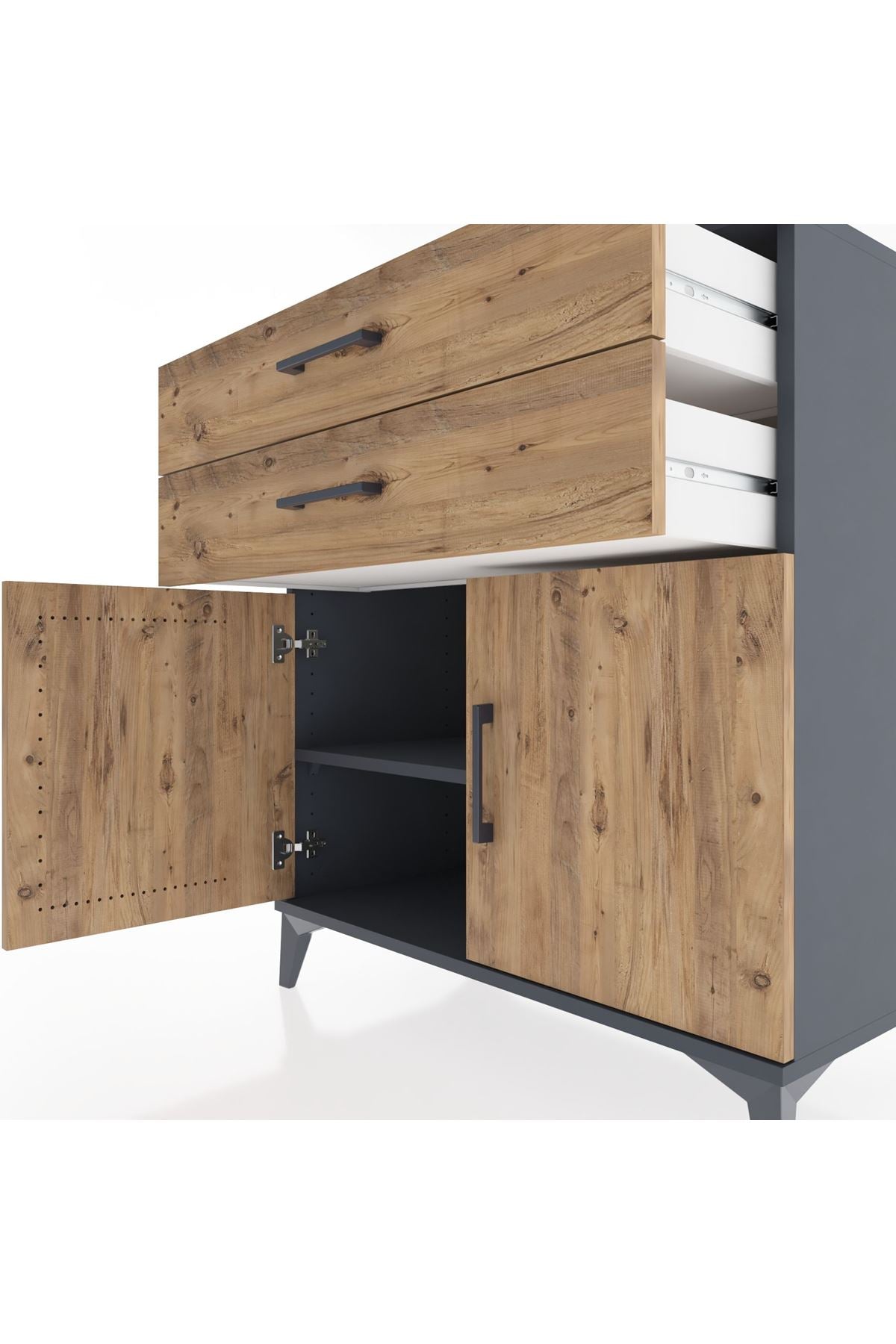 Hyperion Şifonyer Tek Raflı 2 Çekmeceli 2 Kapaklı 88x44x96 Antrasit-Çam