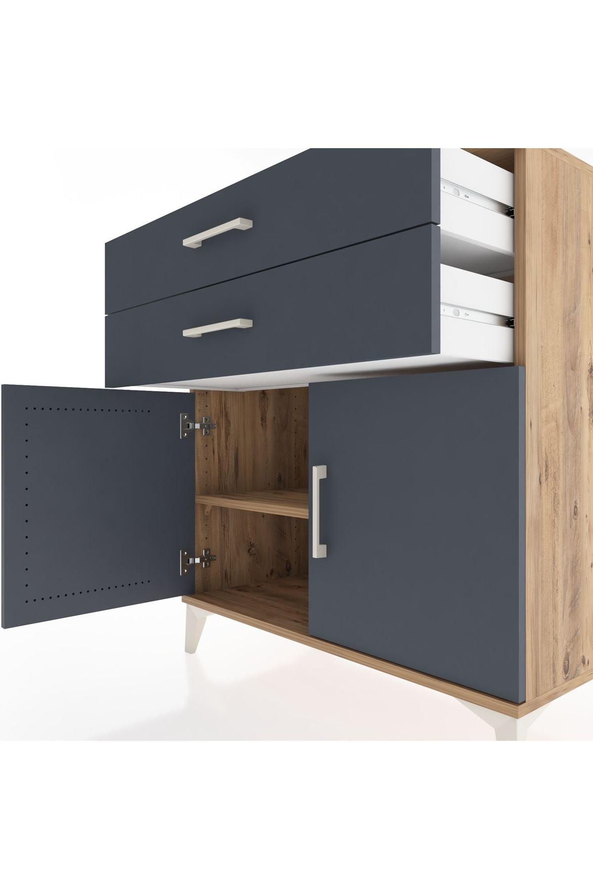 Hyperion Şifonyer Tek Raflı 2 Çekmeceli 2 Kapaklı 88x44x96 Çam-Antrasit