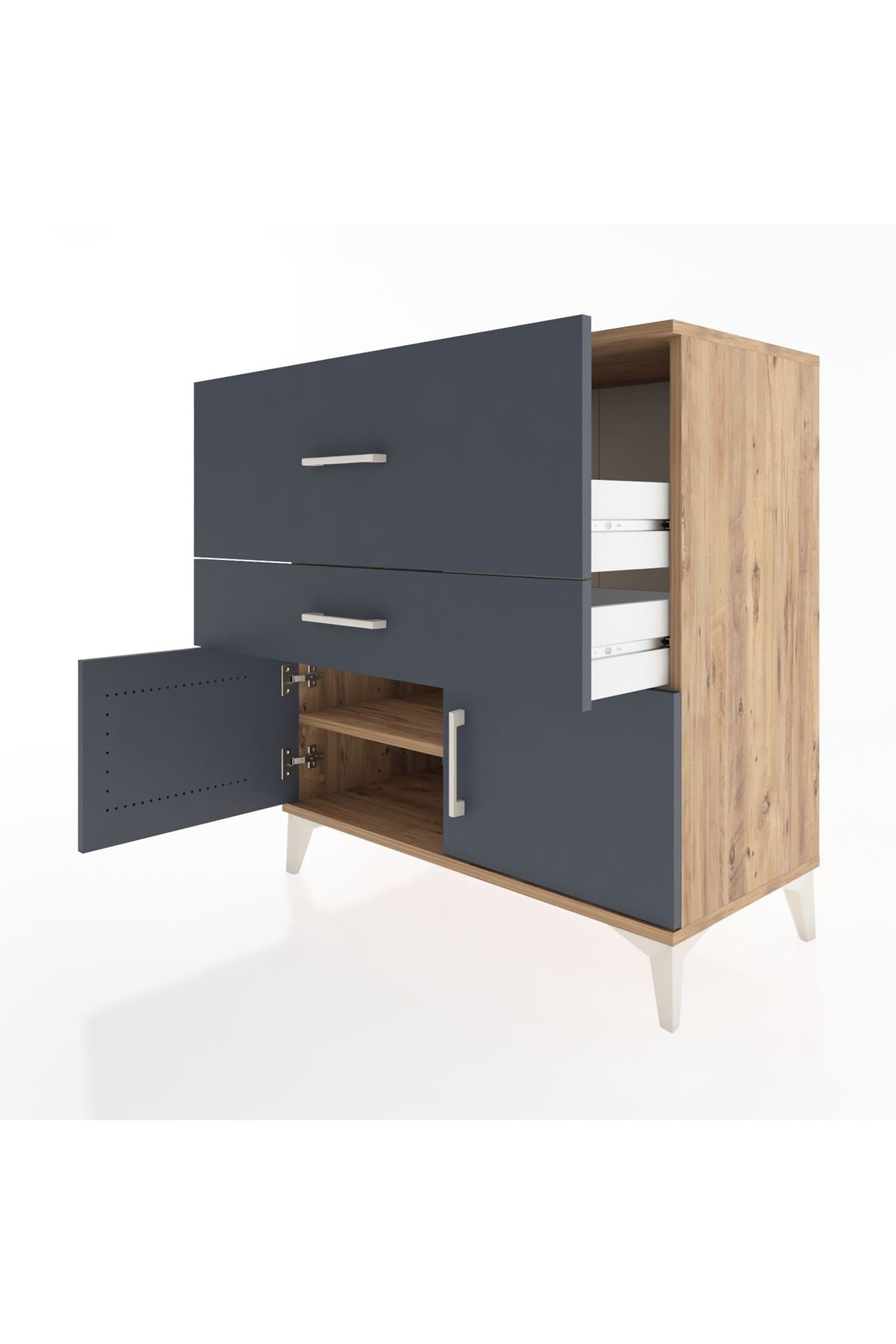 Hyperion Şifonyer Tek Raflı 2 Çekmeceli 2 Kapaklı 88x44x96 Çam-Antrasit