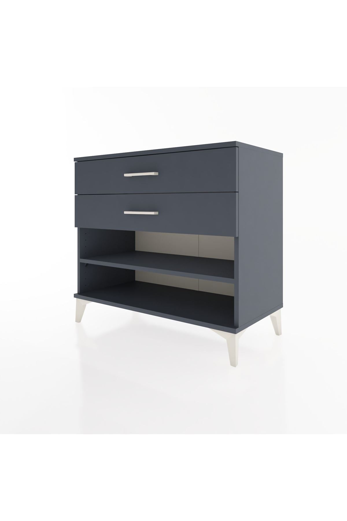 Bu sifonyer, depolama ihtiyaçlarını düzenli ve estetik bir şekilde karşılayarak yaşam alanlarında hem düzen hem de modern bir görünüm sağlar. Antrasit yüzey mat ve zamansız bir duruş sunar; metal ayaklar ürüne ekstra dayanıklılık ve stabilite kazandırırken metal kulplar uzun ömürlü kullanım sağlar. 1. sınıf suntalam gövde, nem ve deformasyona karşı dayanıklı yüzey performansı sunar. Tek raflı dizayn ve iki çekmece kombini, sık kullanılan eşyaları kolay erişilebilir tutar; raflar ayarlanabilir olduğundan farklı yüksekliklerde ürünler yerleştirilebilir. Çekmece sayısı konfigüre edilebilir; ihtiyaca göre çekmece ekleme veya azaltma imkanı sunar.