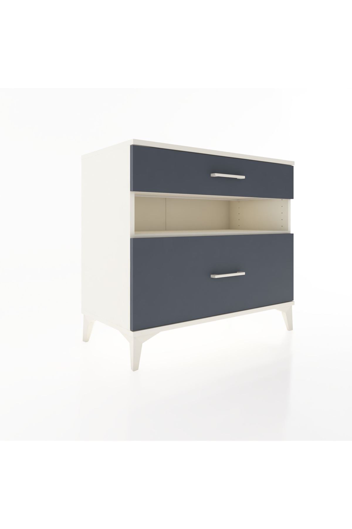 Geniş üst yüzey, sık kullanılan eşyalar için pratik bir yer oluşturur; kitap, dekoratif obje veya elektronik aksesuarlar için ideal. Ortadaki açık raf, hızlı erişim gerektiren malzemeleri düzenli tutar. Alt çekmece, daha büyük ve saklanması gereken eşyalar için derin depolama sağlar. Metal ayaklar temizlik sırasında kolay hareket ve yerden yükseklik sağlayarak hijyen avantajı sunar. Suntalam yüzey nem ve leke tutumuna karşı kolay temizlenir; günlük bakım zahmetsizdir. Modüler yapısı sayesinde ofis, antre veya yatak odası düzenine kolayca entegre edilir.