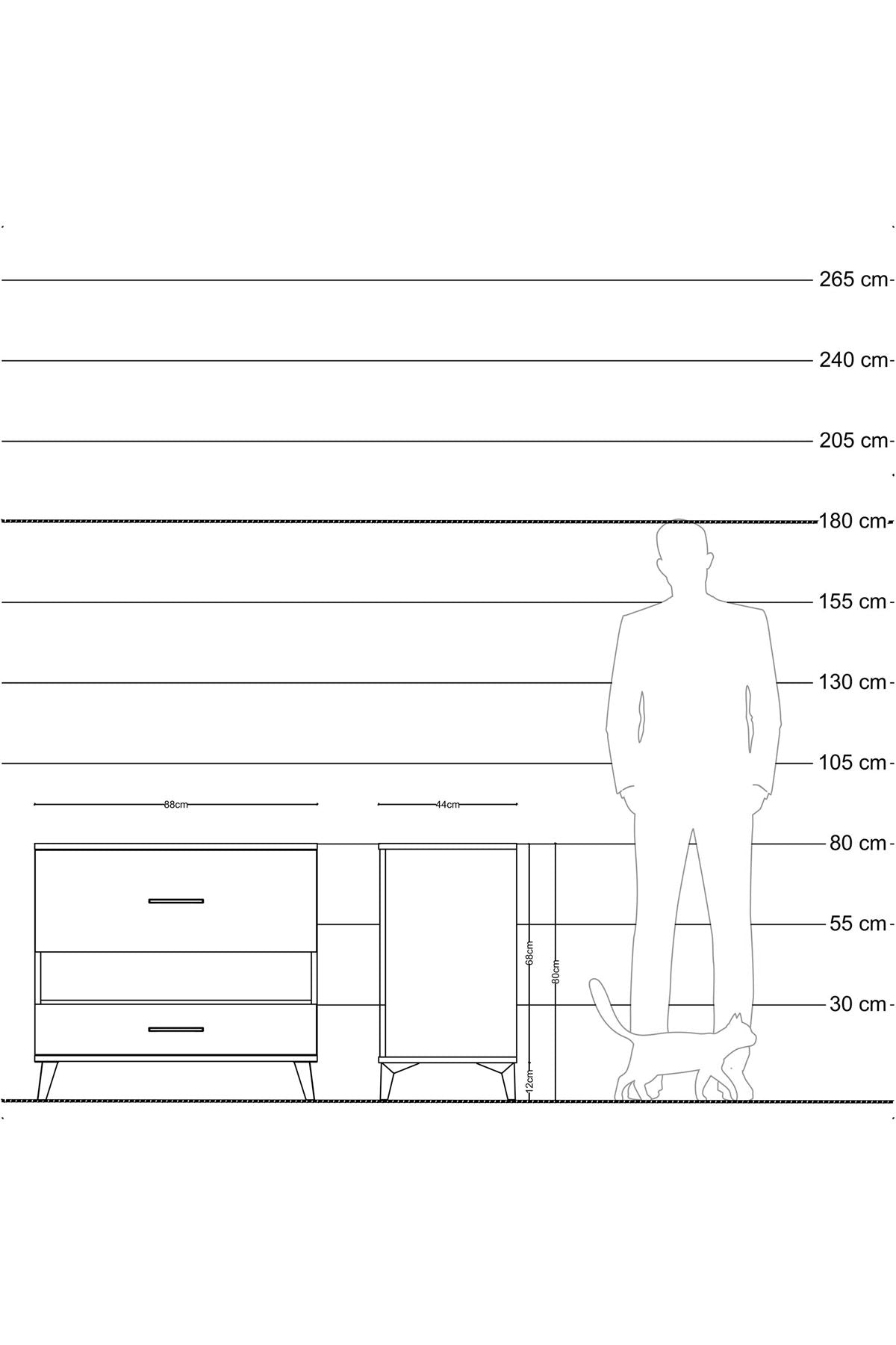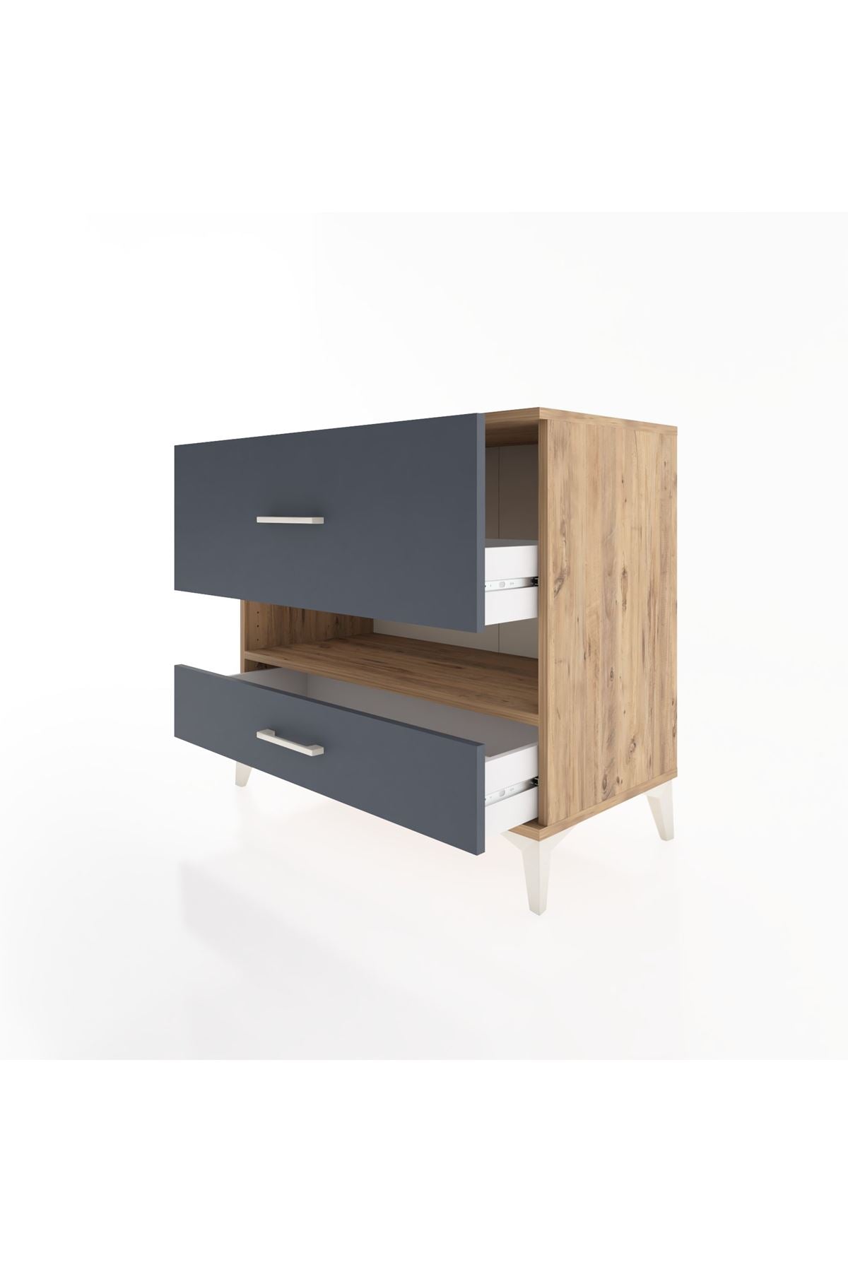 Hyperion Şifonyer Tek Raflı 2 Çekmeceli 88x44x80 Çam-Antrasit