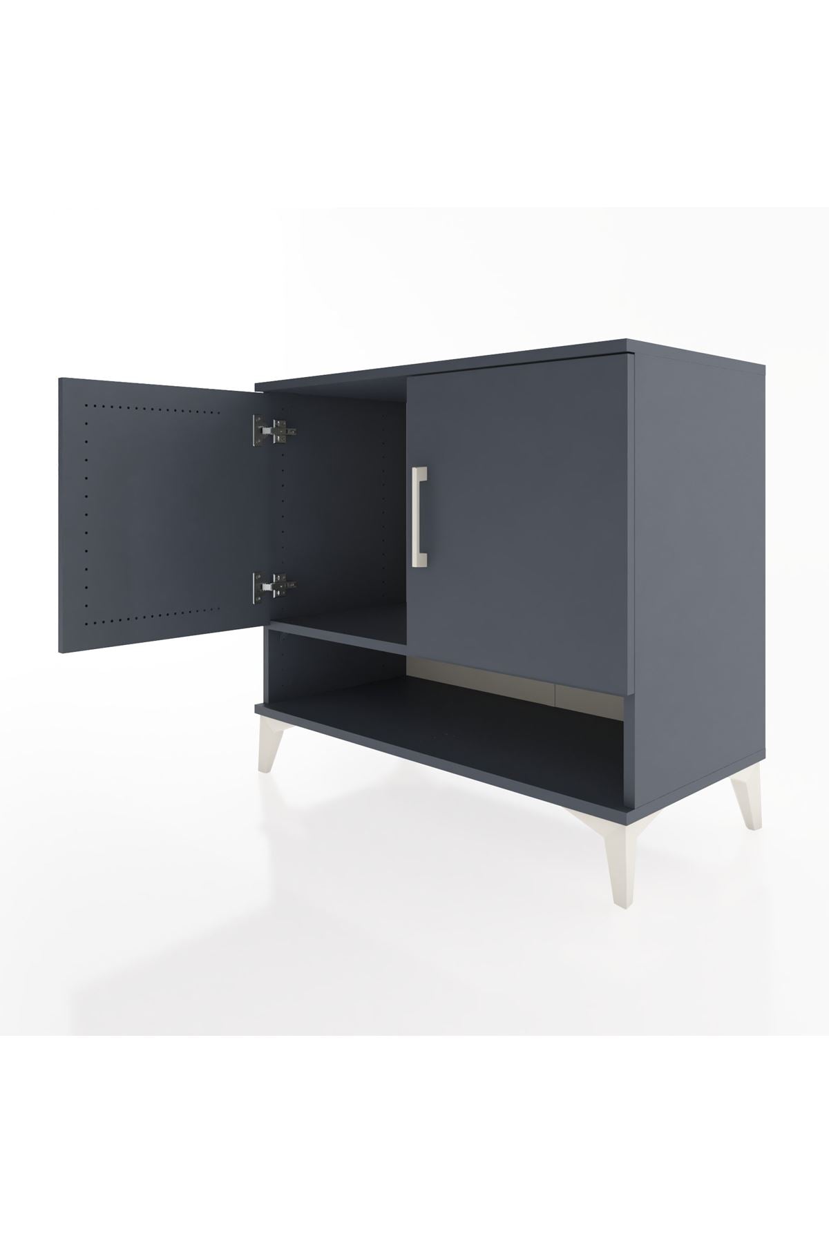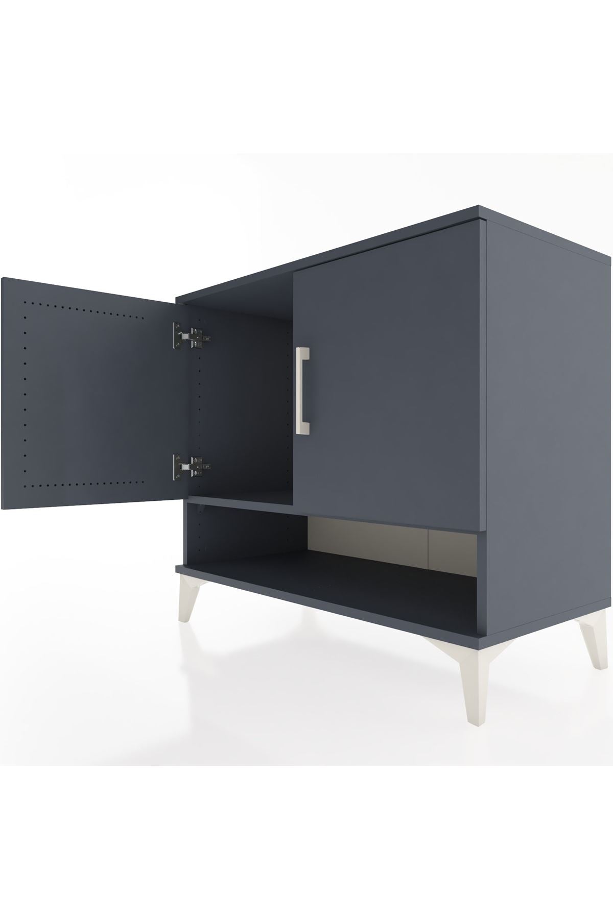 Geniş üst yüzeyinde dekoratif objeler veya kullanım eşyaları düzenli şekilde sergilenir. Kapaklı bölme, görüntü kirliliğini azaltarak eşyalarınızı gizler; tek raflı tasarım, ayarlanabilir raf desteği sayesinde farklı yüksekliklerde kutu ve sepet kullanımına uygundur. Metal ayak tasarımı zemini kolay temizlenebilir kılar, mobilyanın nem ve tozdan etkilenmesini azaltır. Modüler çekmece seçeneği ile yatak odası, koridor veya giriş gibi alanlarda ihtiyaçlarınıza göre uyarlanır.