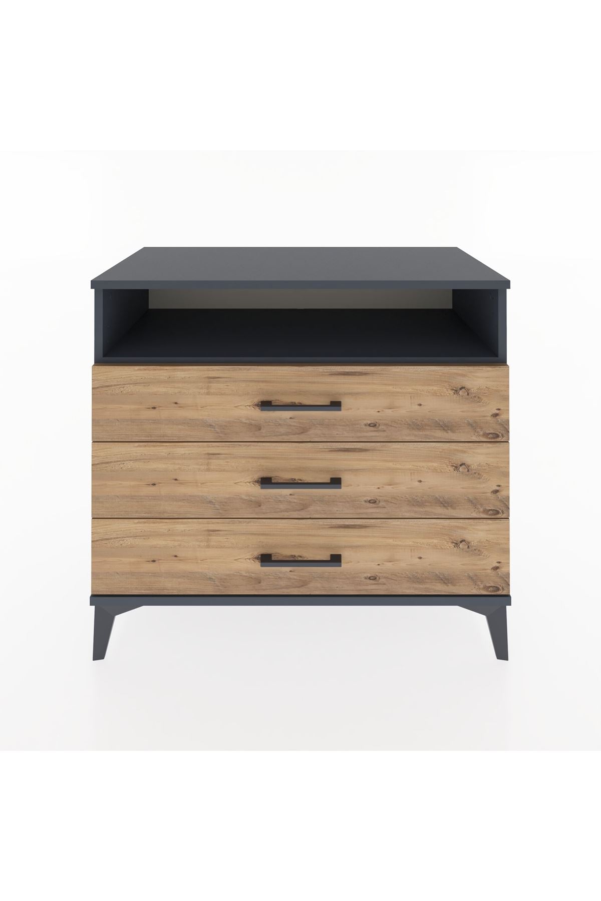 Hyperion Şifonyer Tek Raflı 3 Çekmeceli 88x44x80 Antrasit-Çam