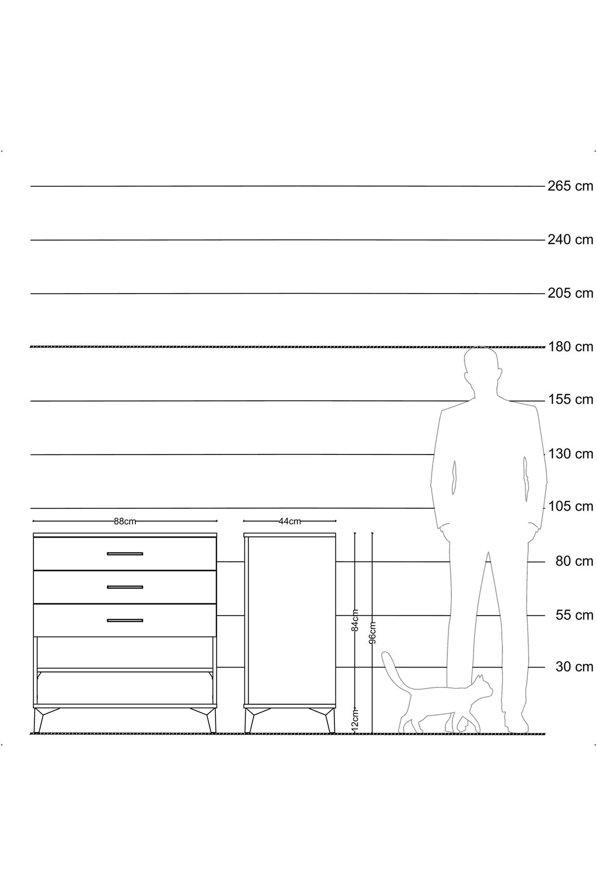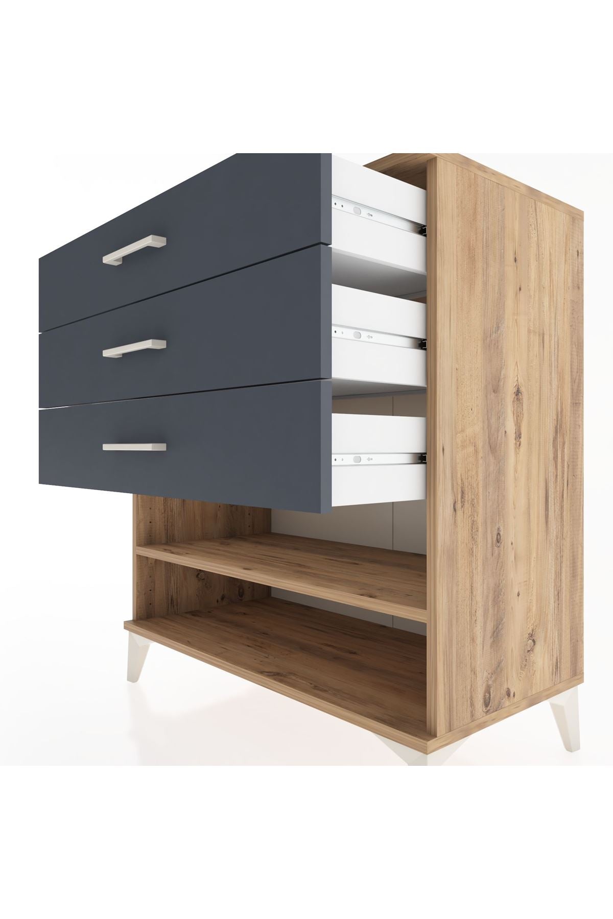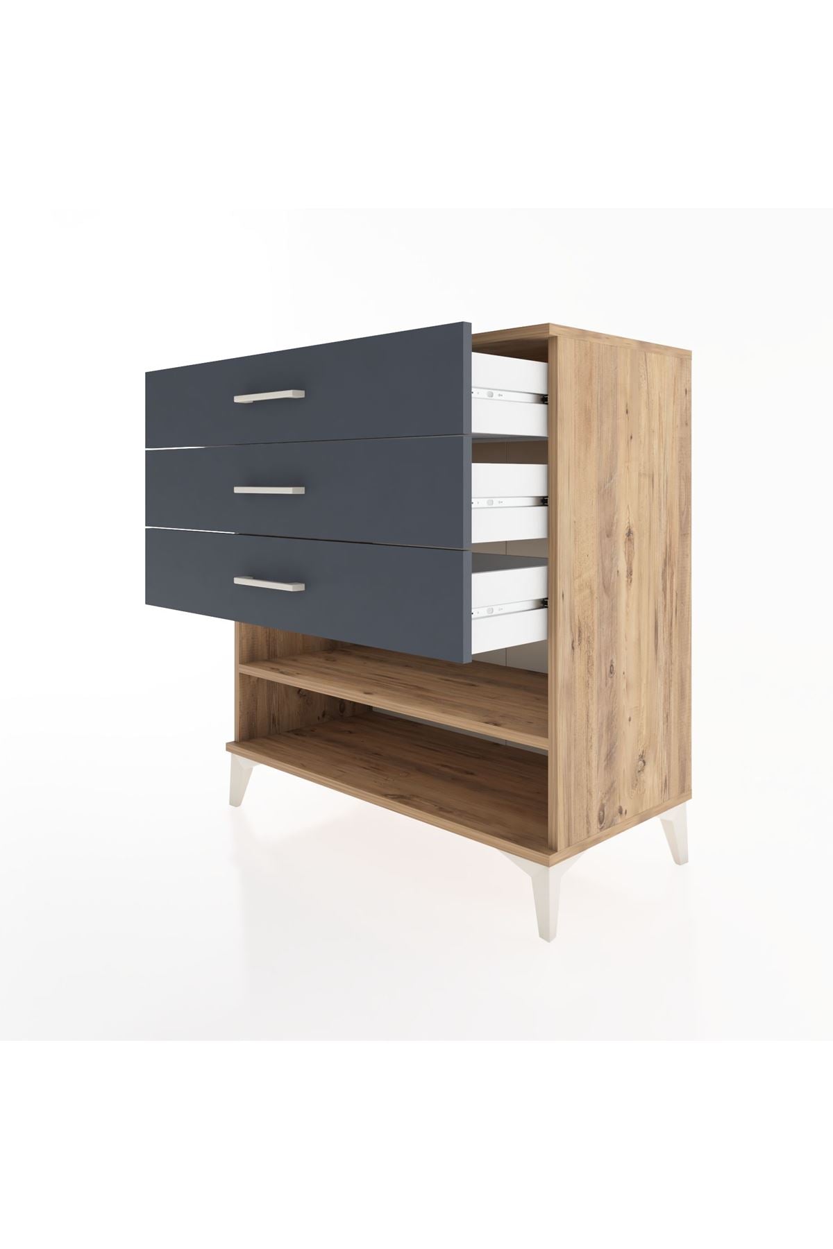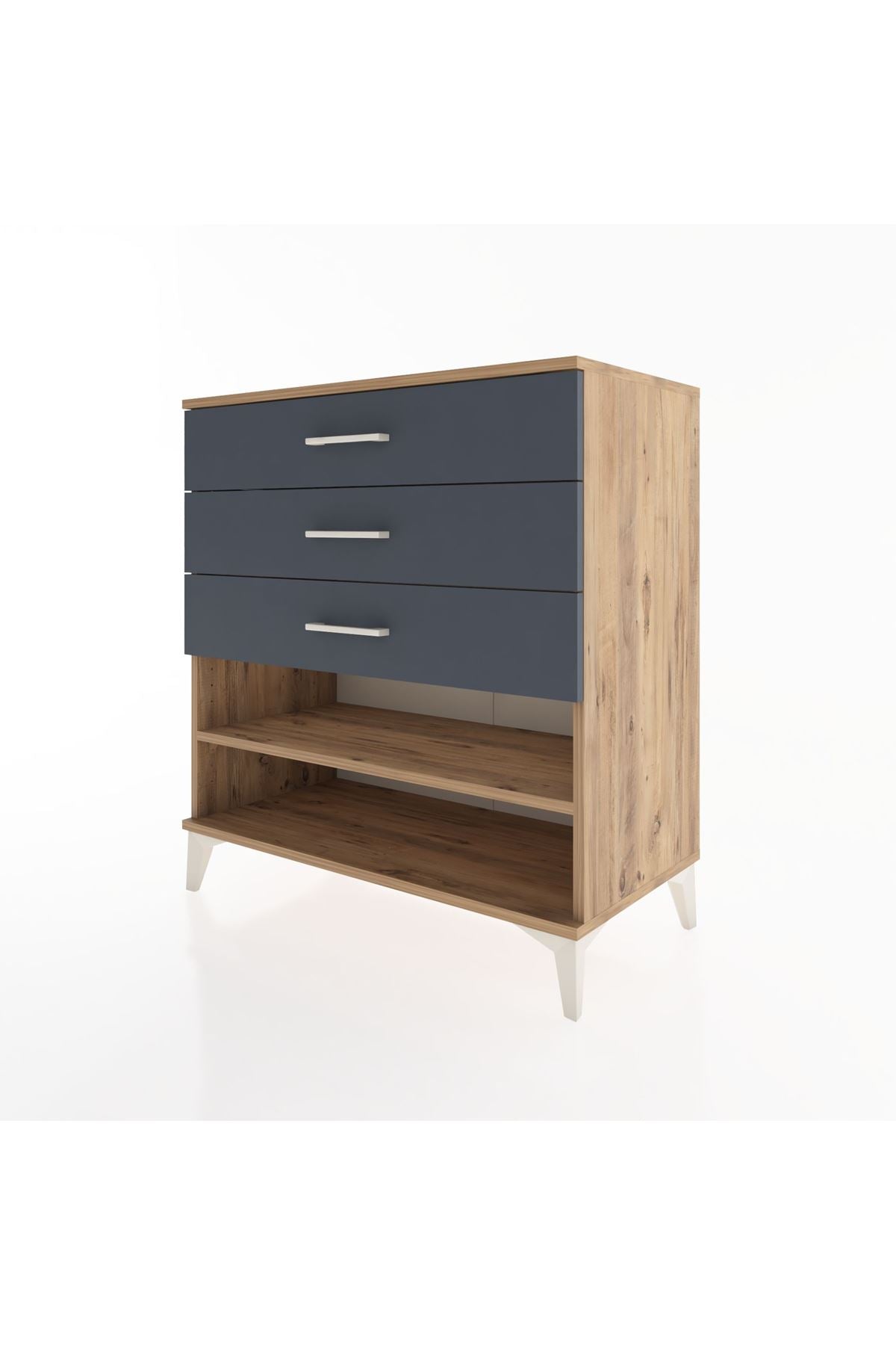 Hyperion Şifonyer Tek Raflı 3 Çekmeceli 88x44x96 Çam-Antrasit