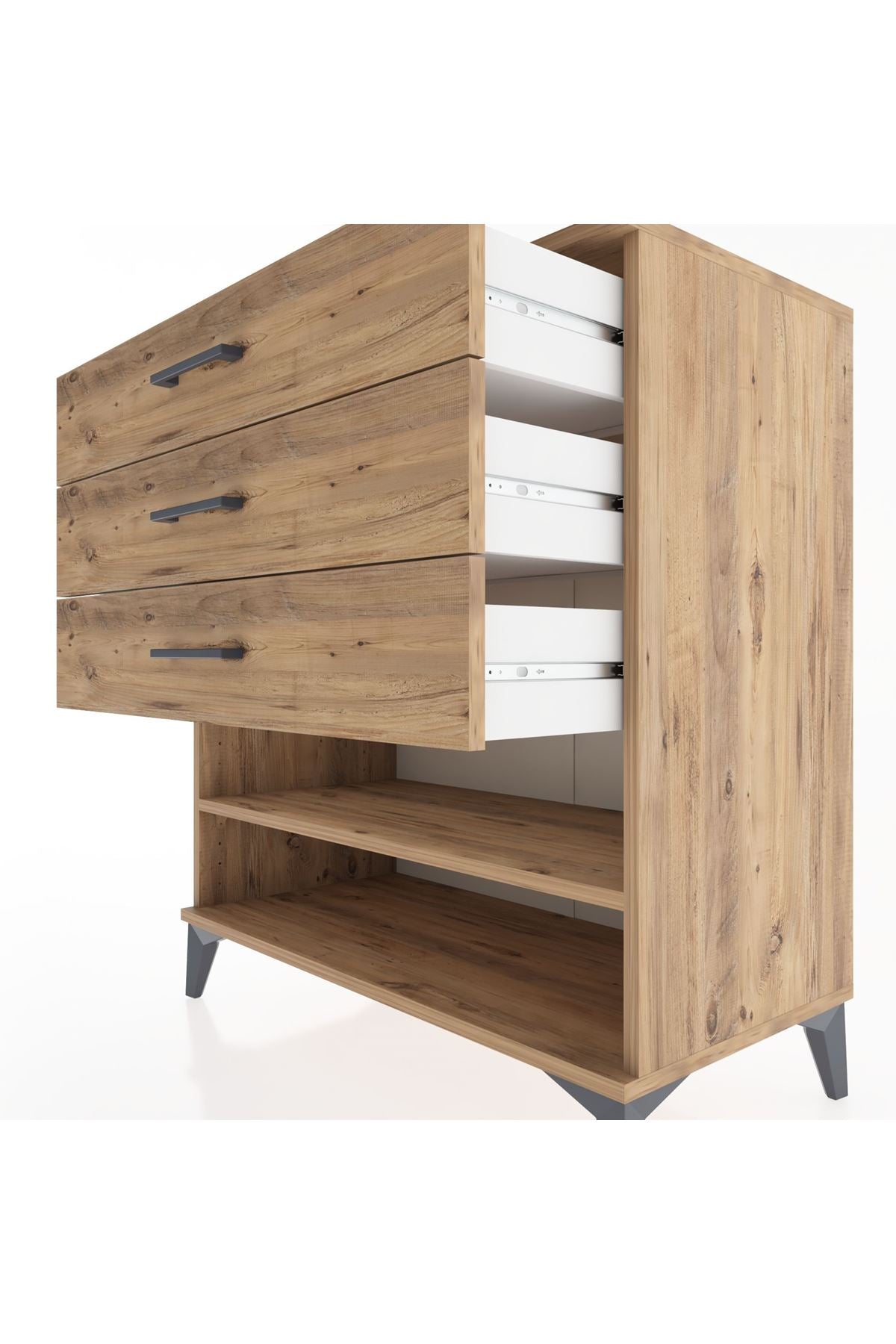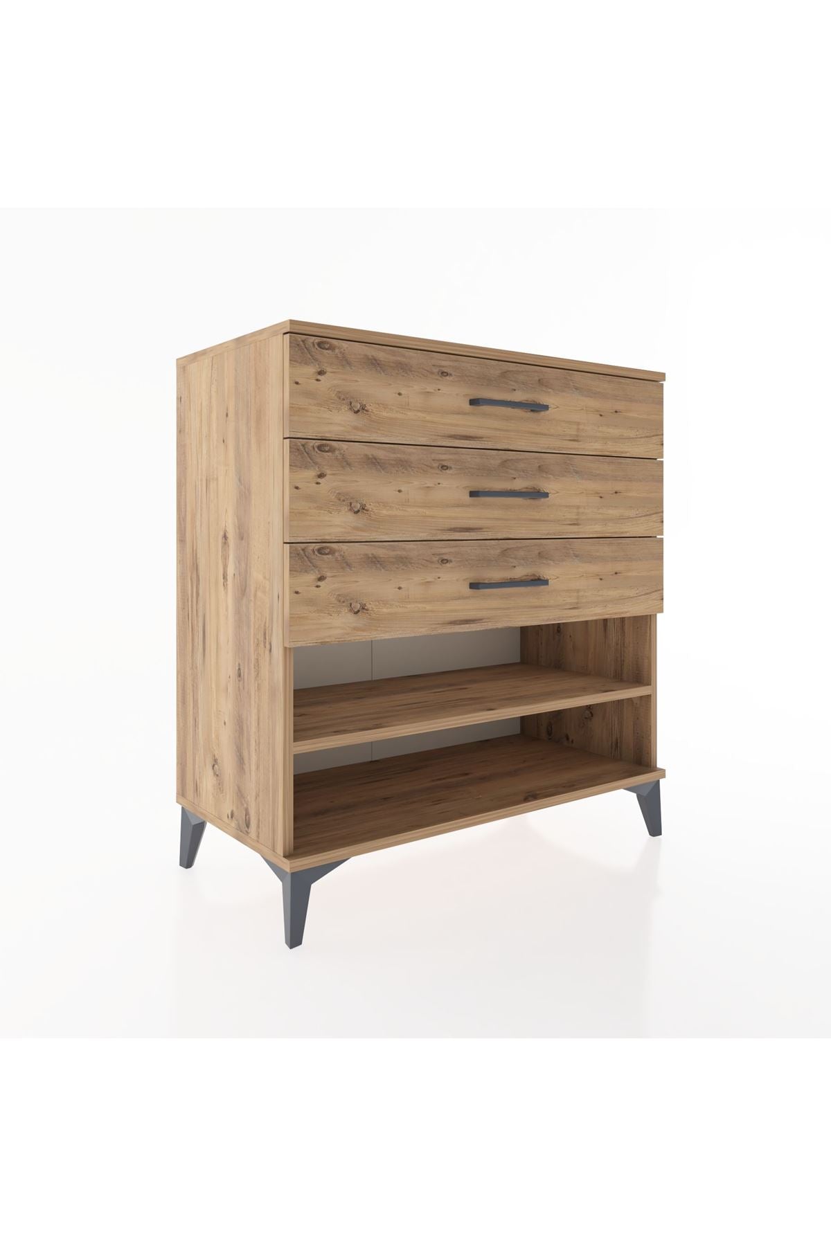 Hyperion Şifonyer Tek Raflı 3 Çekmeceli 88x44x96 Çam-Çam