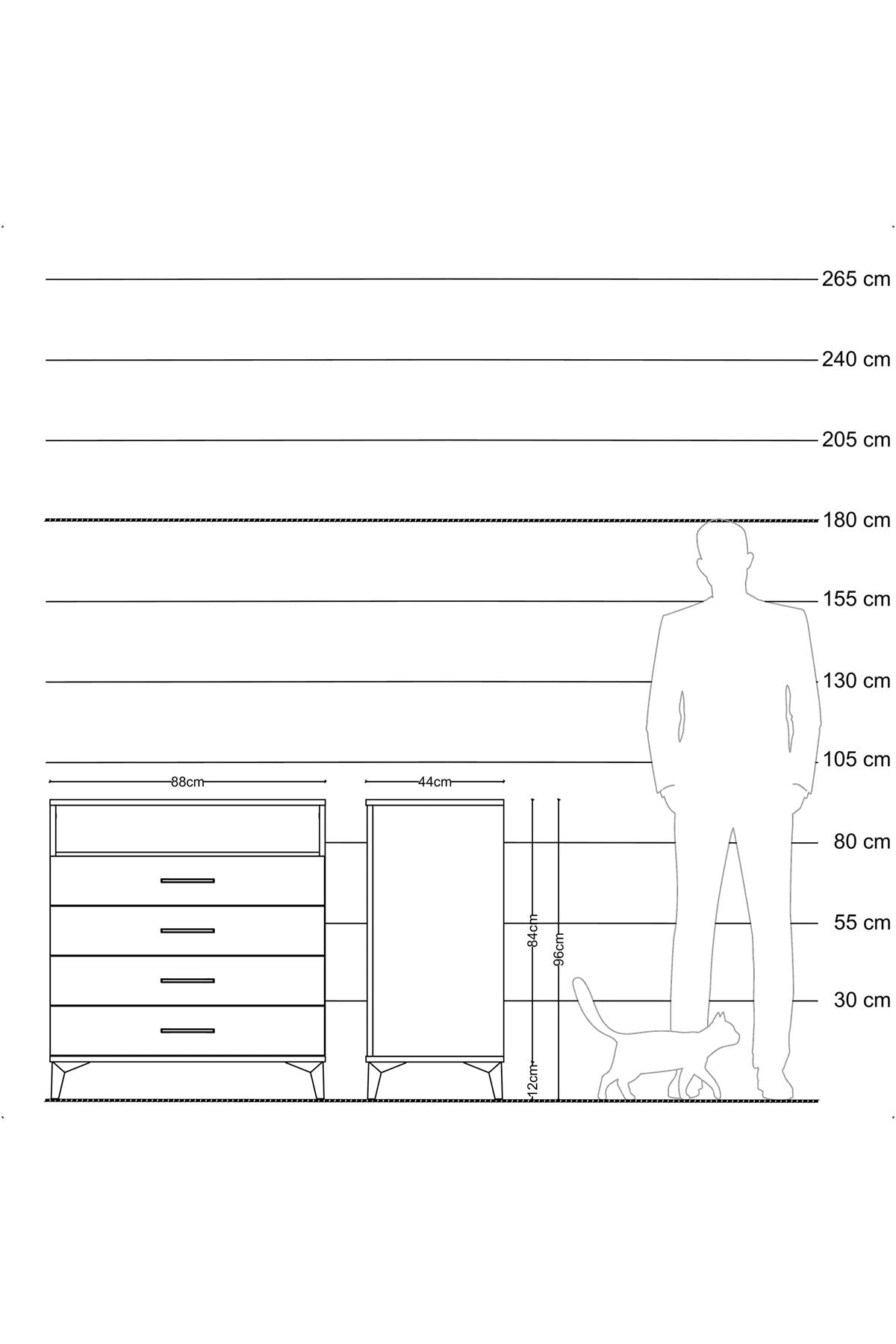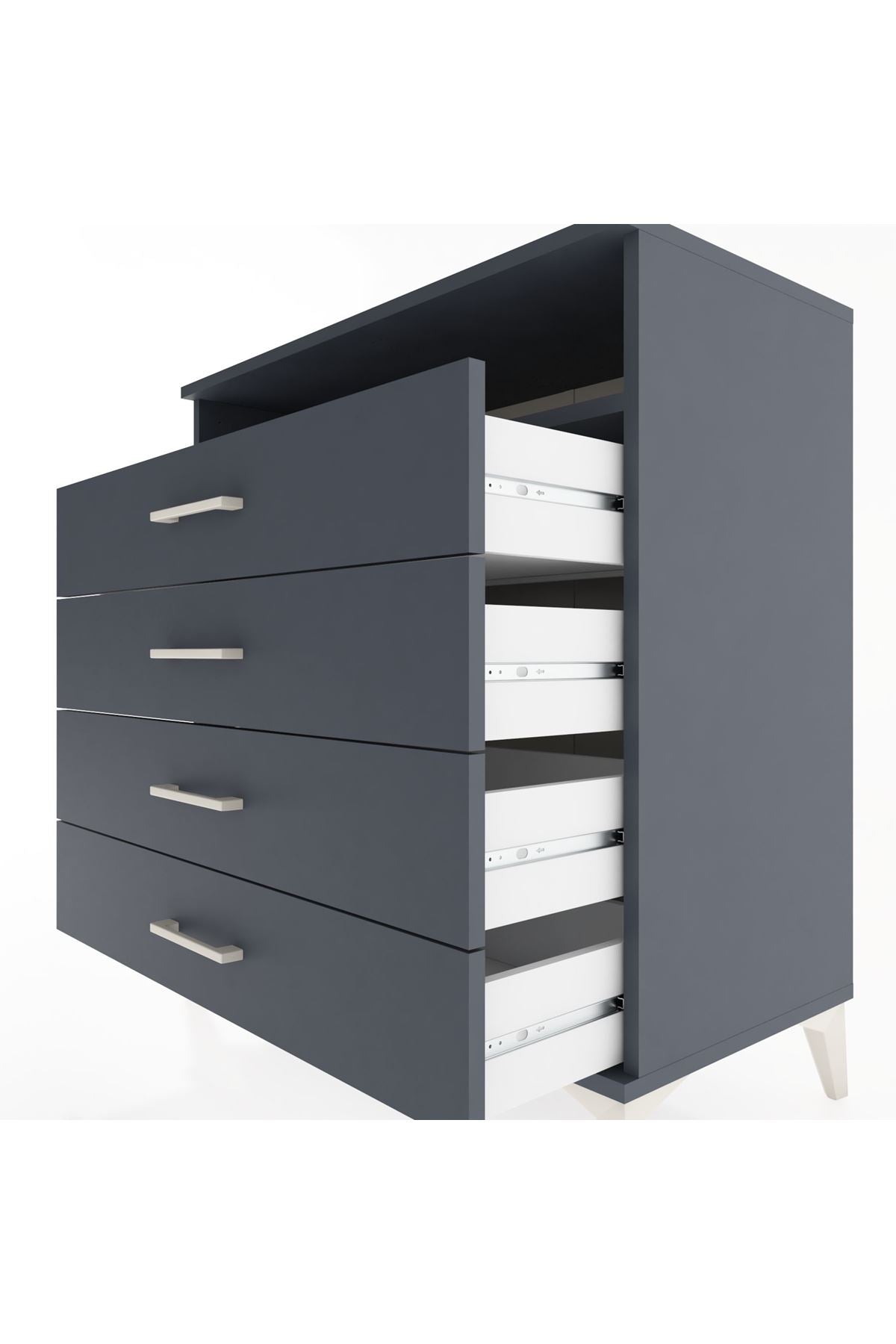 Hyperion Şifonyer Tek Raflı 4 Çekmeceli 88x44x96 Antrasit-Antrasit