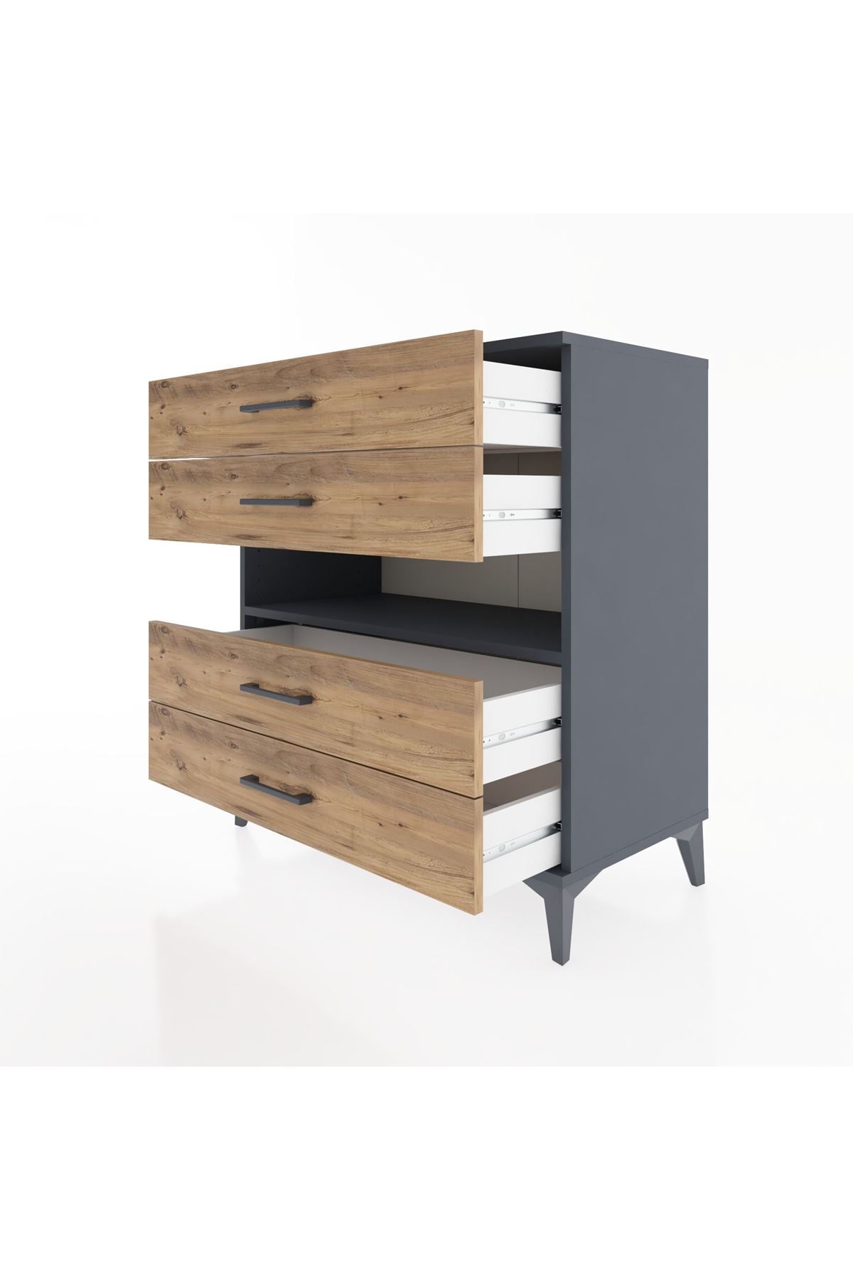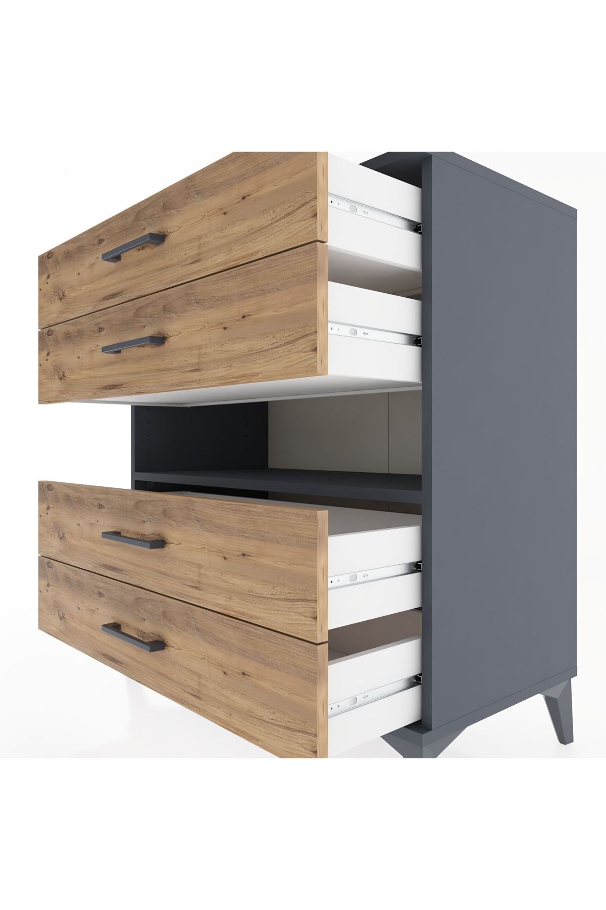 Hyperion Şifonyer Tek Raflı 4 Çekmeceli 88x44x96 Antrasit-Çam