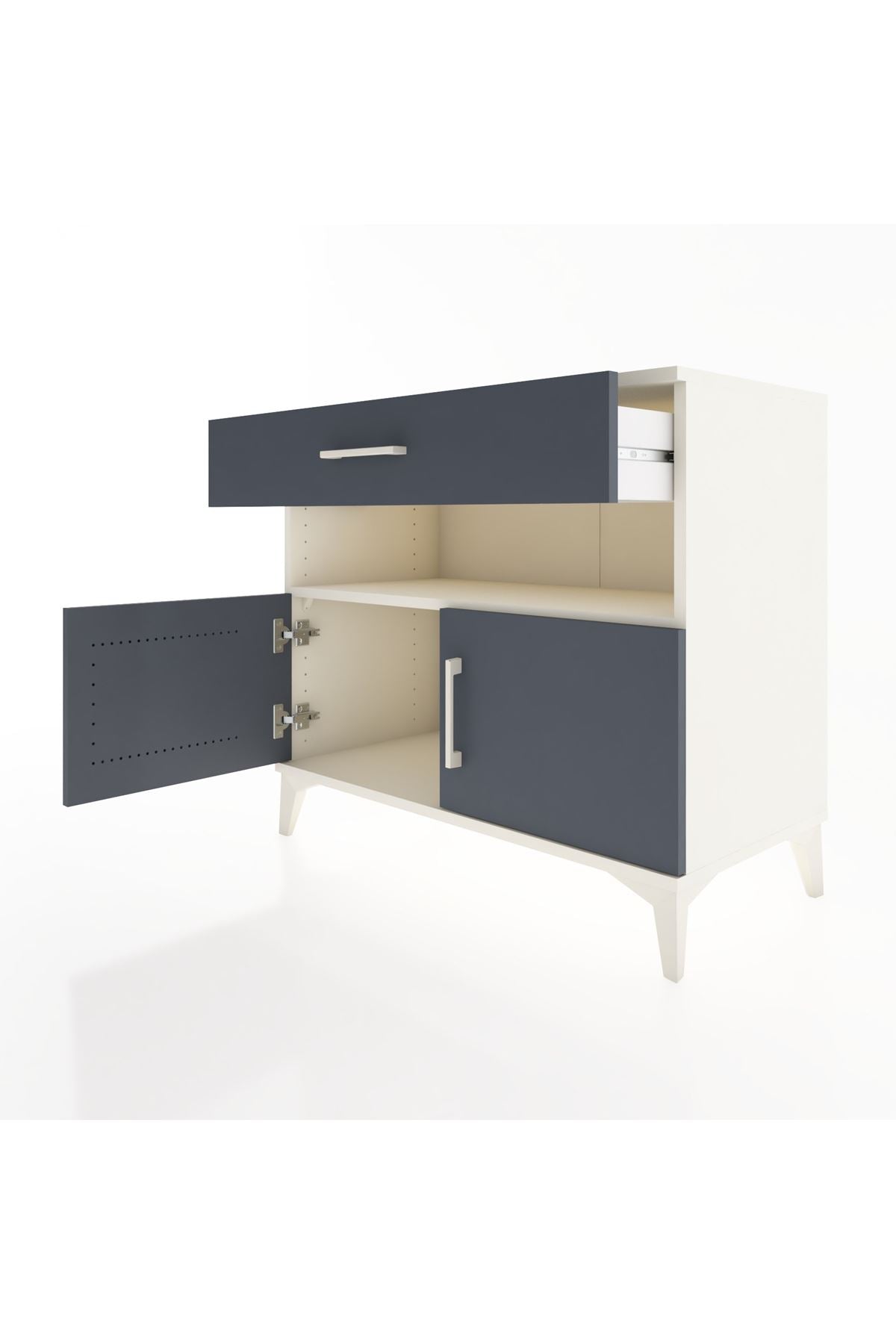 Düzenli bir görünüm sağlar; kıyafet, çamaşır veya aksesuarları sınıflandırarak yaşam alanını ferahlatır. Kompakt ölçüleri sayesinde dar koridorlarda, yatak odalarında veya antrede pratik çözümler sunar. Üst raf ve çekmece kombinasyonu sık kullanılan eşyaları erişilebilir kılar; kapaklı bölüm ise görünümü temiz tutar. Sağlam metal ayaklar zeminden yüksekte tutarak temizlik kolaylığı sağlar. Suntalam yüzey çizilmelere ve nem değişimlerine karşı dayanıklı üretim sunar.
