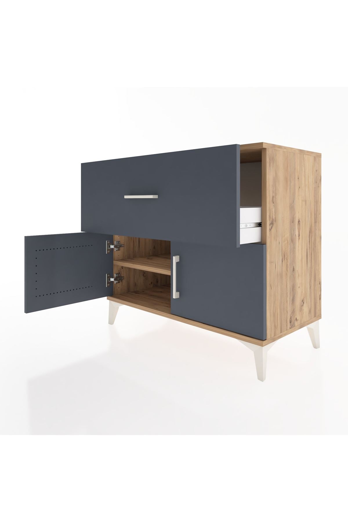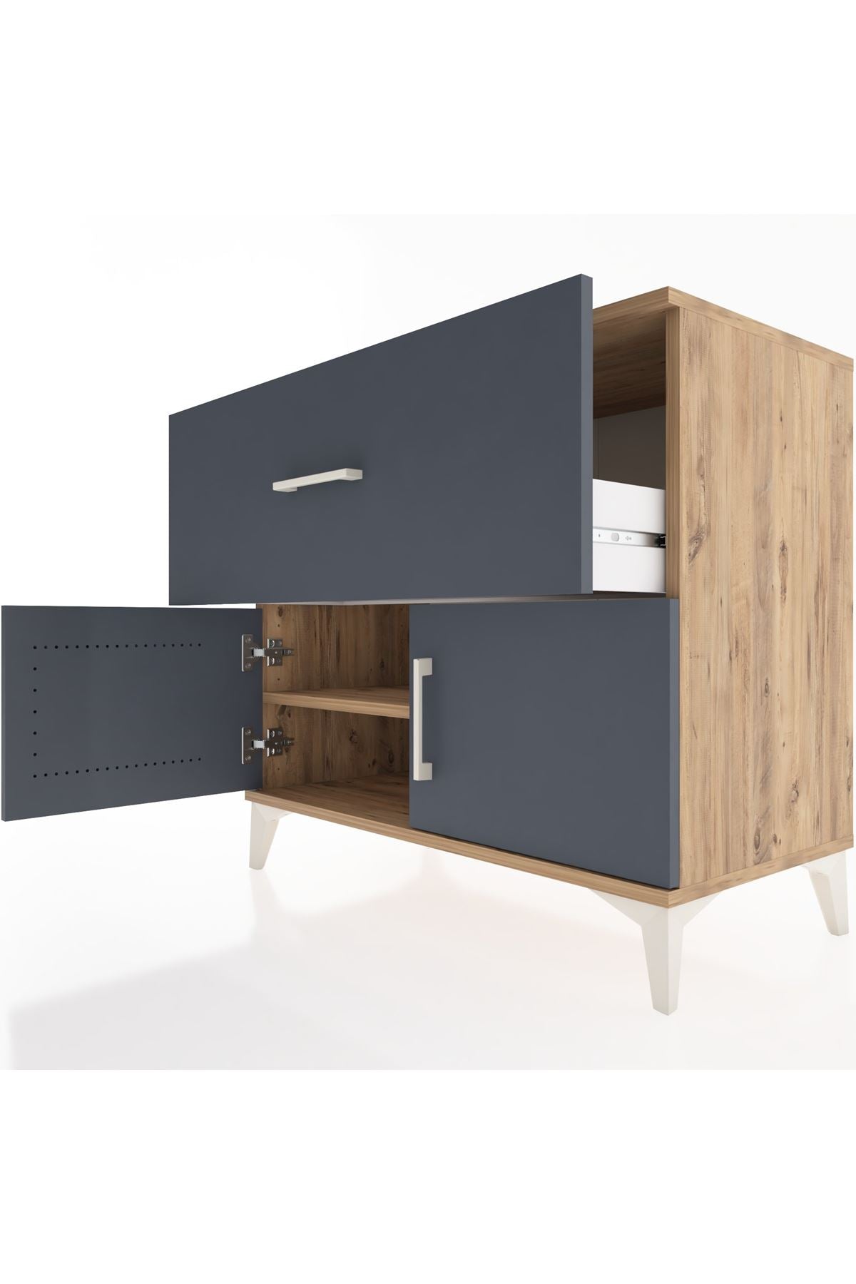 Hyperion Şifonyer Tek Raflı Tek Çekmeceli 2 Kapaklı 88x44x80 Çam-Antrasit