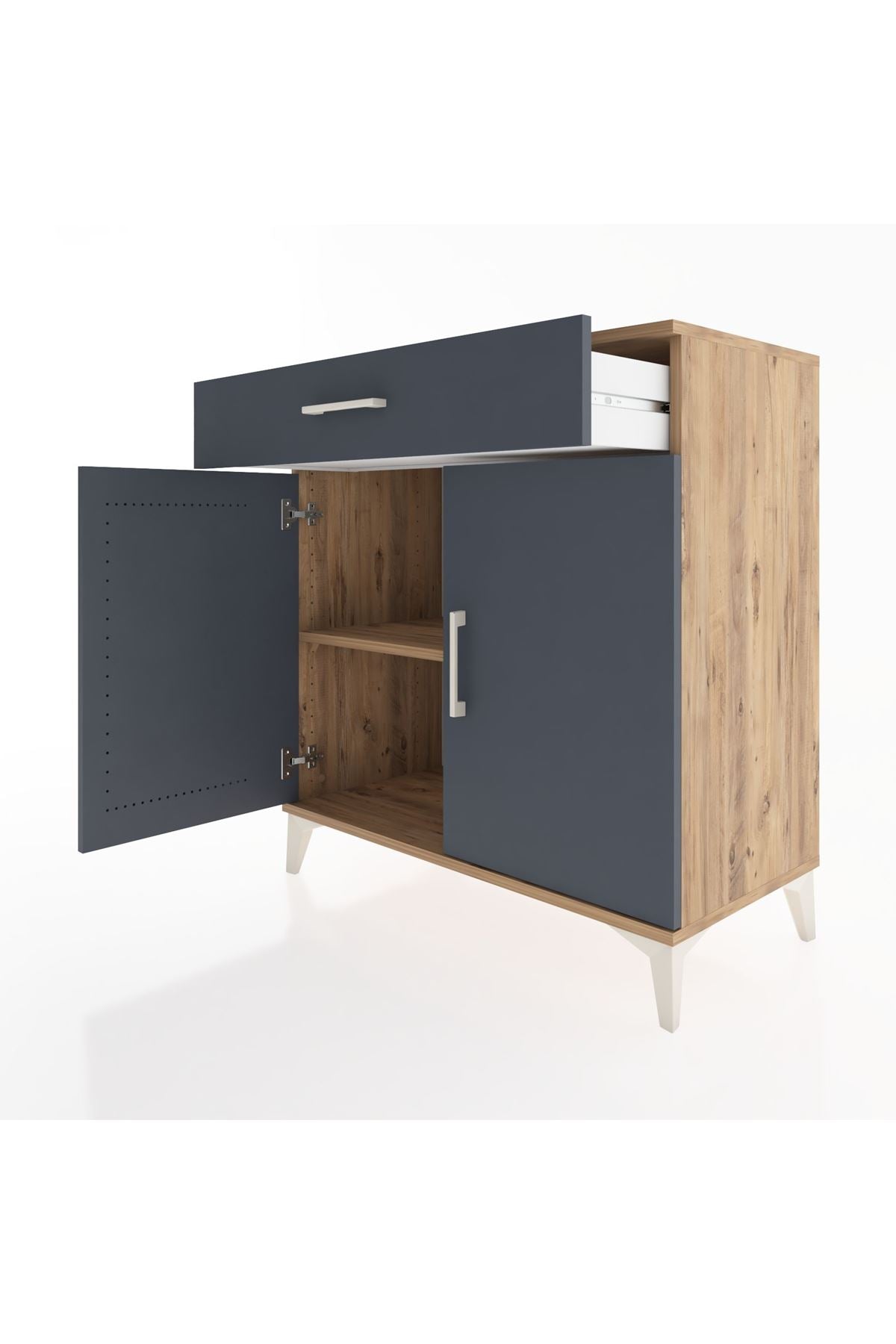 Hyperion Şifonyer Tek Raflı Tek Çekmeceli 2 Kapaklı 88x44x96 Çam-Antrasit