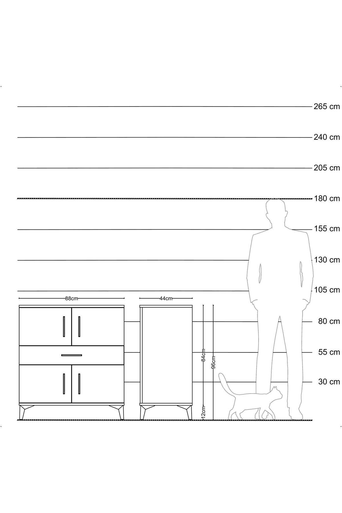 Hyperion Şifonyer Tek Raflı Tek Çekmeceli 4 Kapaklı 88x44x96 Çam-Çam
