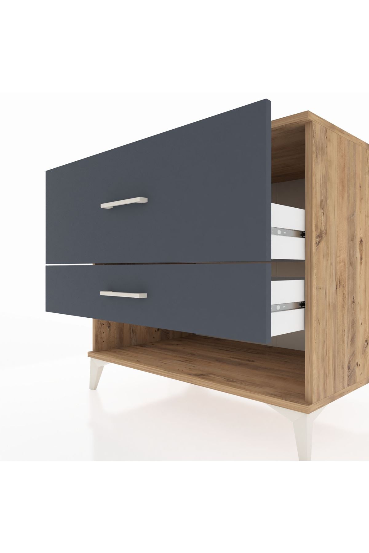 Kronos Şifonyer 2 Çekmeceli 88x59x80 Çam-Antrasit