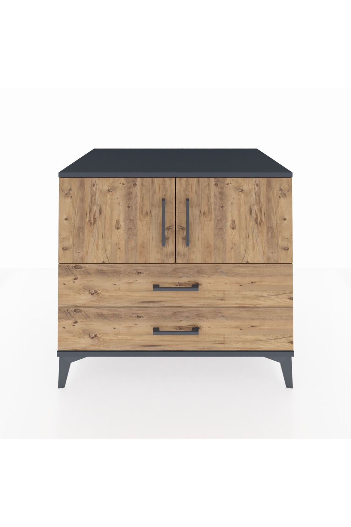 Kronos Şifonyer 2 Raflı 2 Çekmeceli 2 Kapaklı 88x59x80 Antrasit-Çam