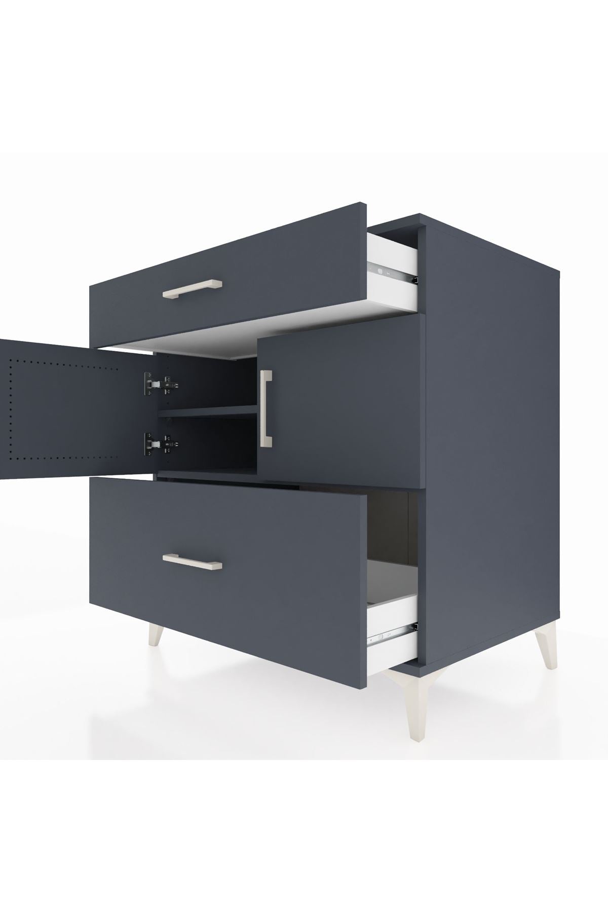 Kronos Şifonyer 2 Raflı 2 Çekmeceli 2 Kapaklı 88x59x96 Antrasit-Antrasit