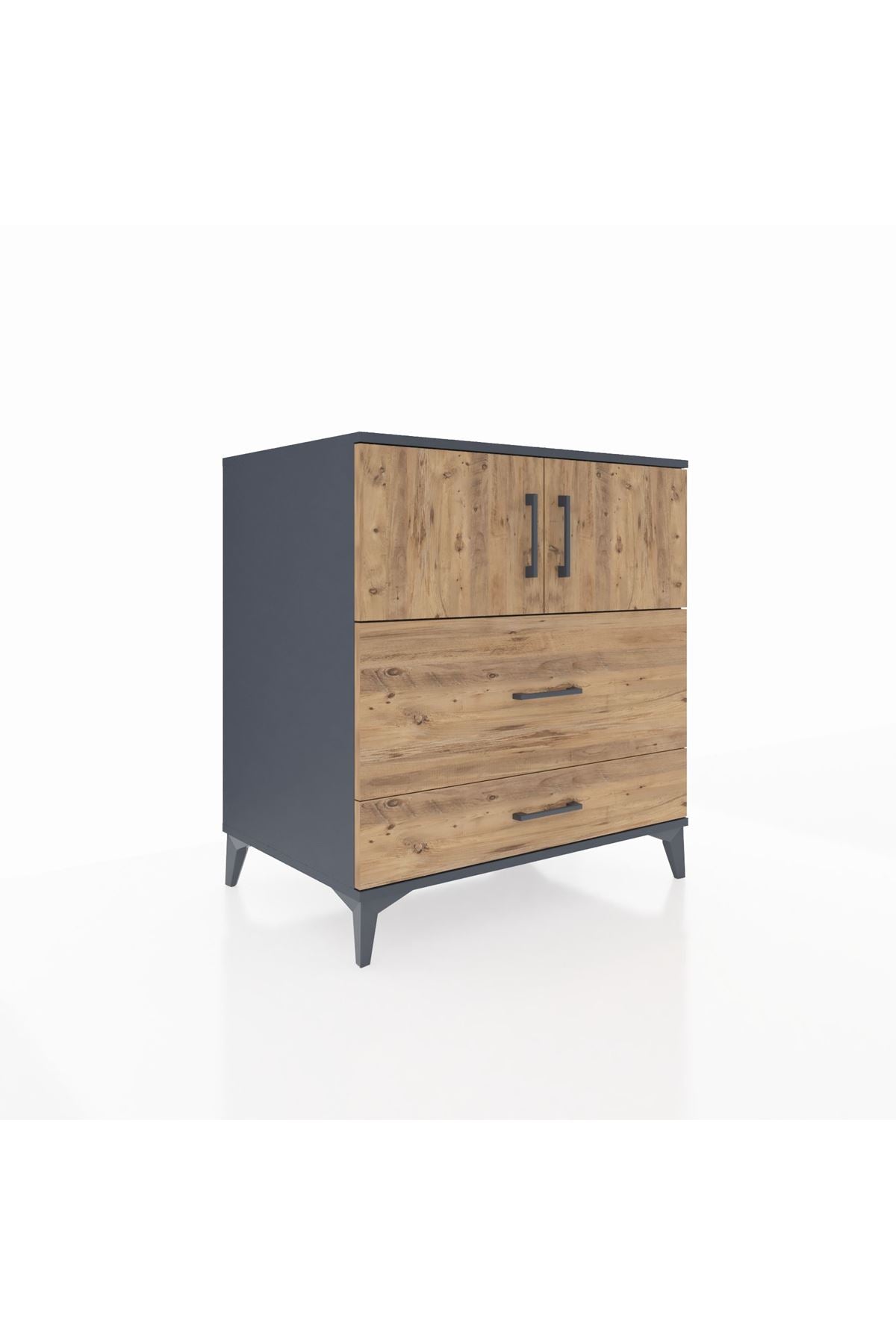 Kronos Şifonyer 2 Raflı 2 Çekmeceli 2 Kapaklı 88x59x96 Antrasit-Çam