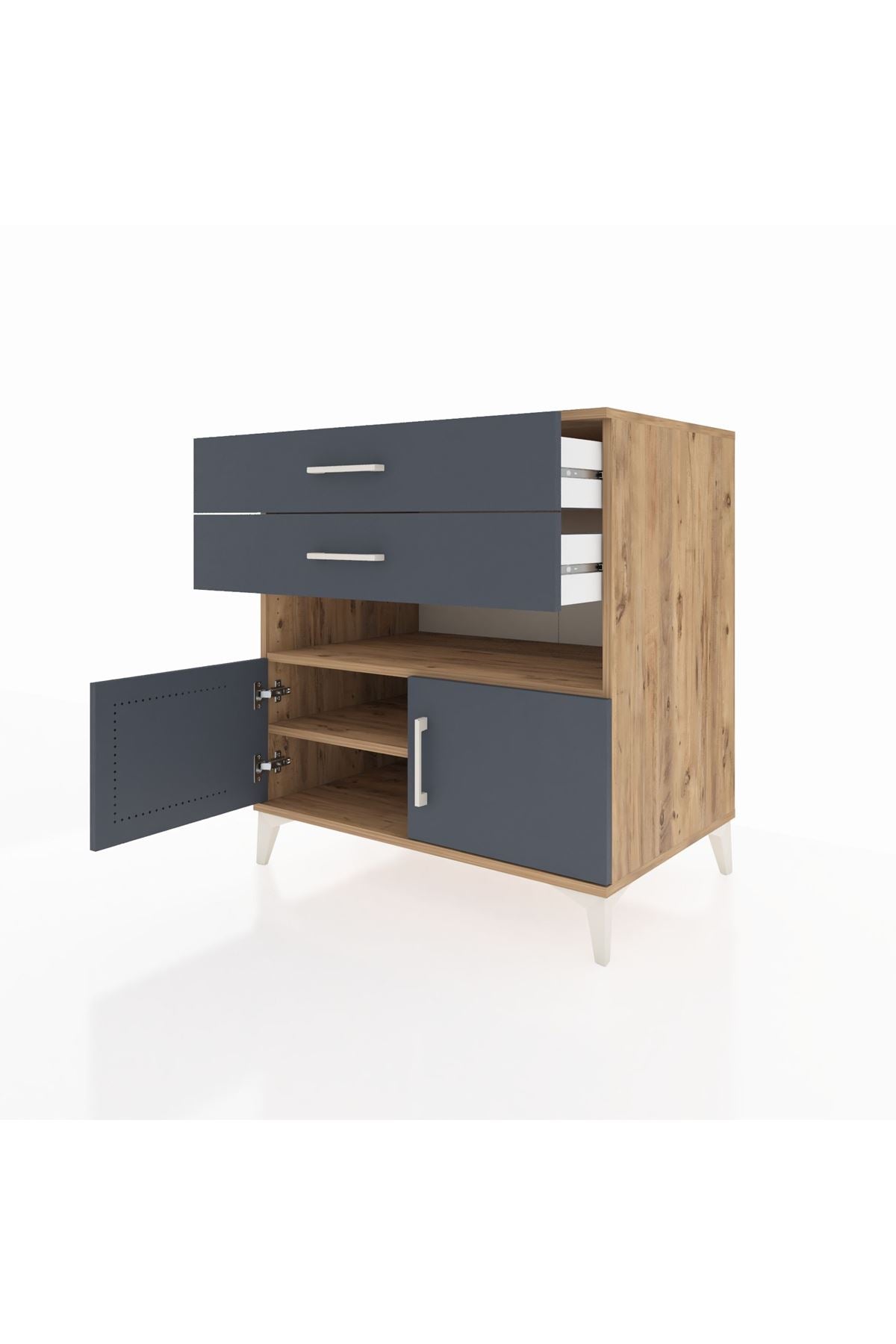 Kronos Şifonyer 2 Raflı 2 Çekmeceli 2 Kapaklı 88x59x96 Çam-Antrasit