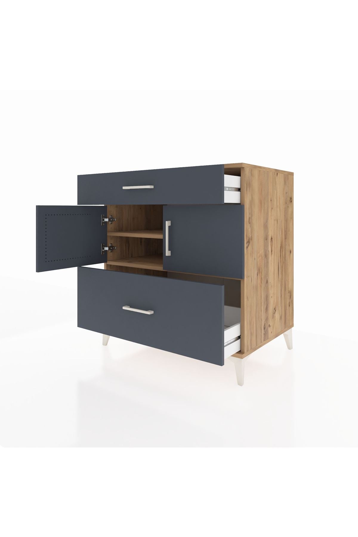 Kronos Şifonyer 2 Raflı 2 Çekmeceli 2 Kapaklı 88x59x96 Çam-Antrasit