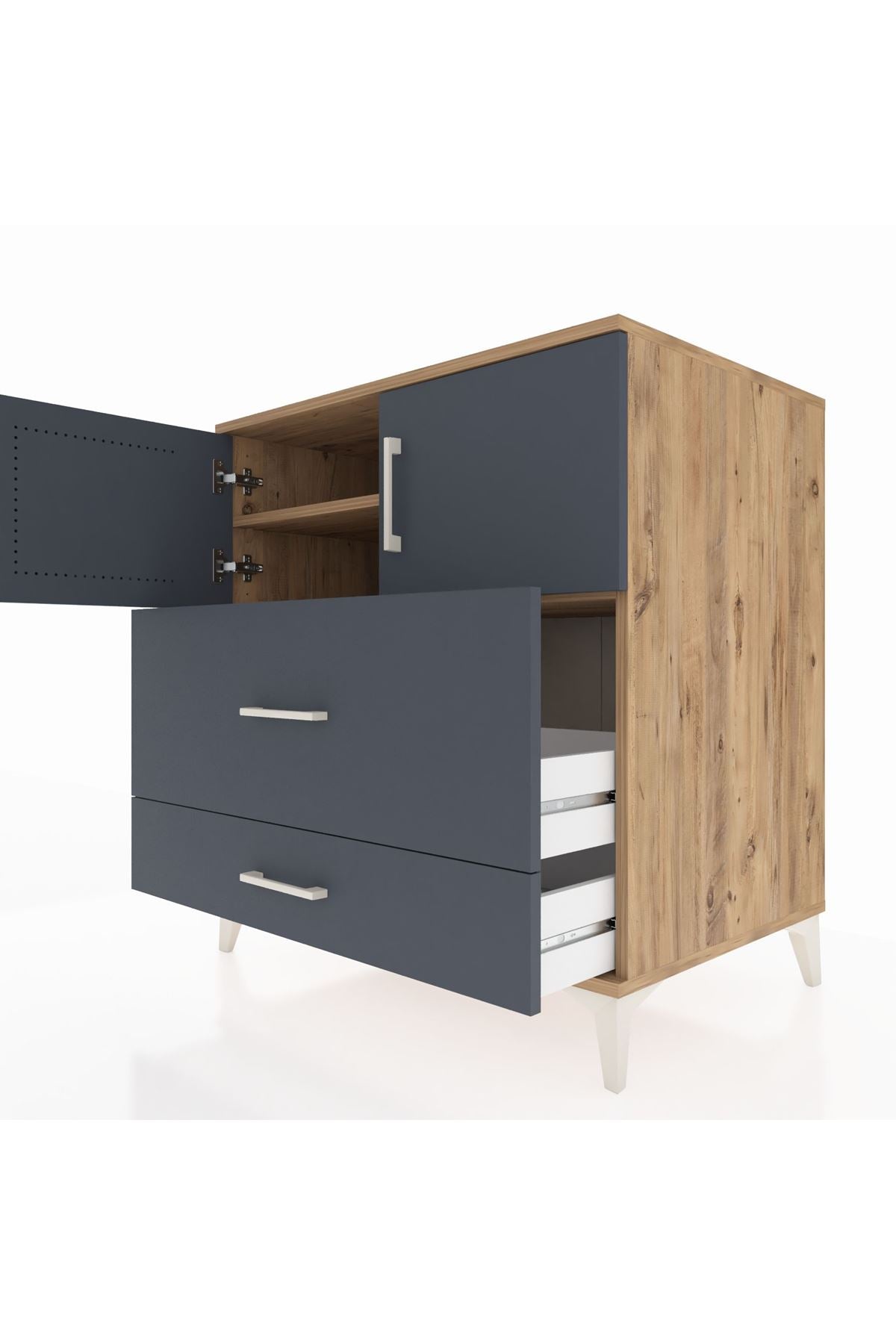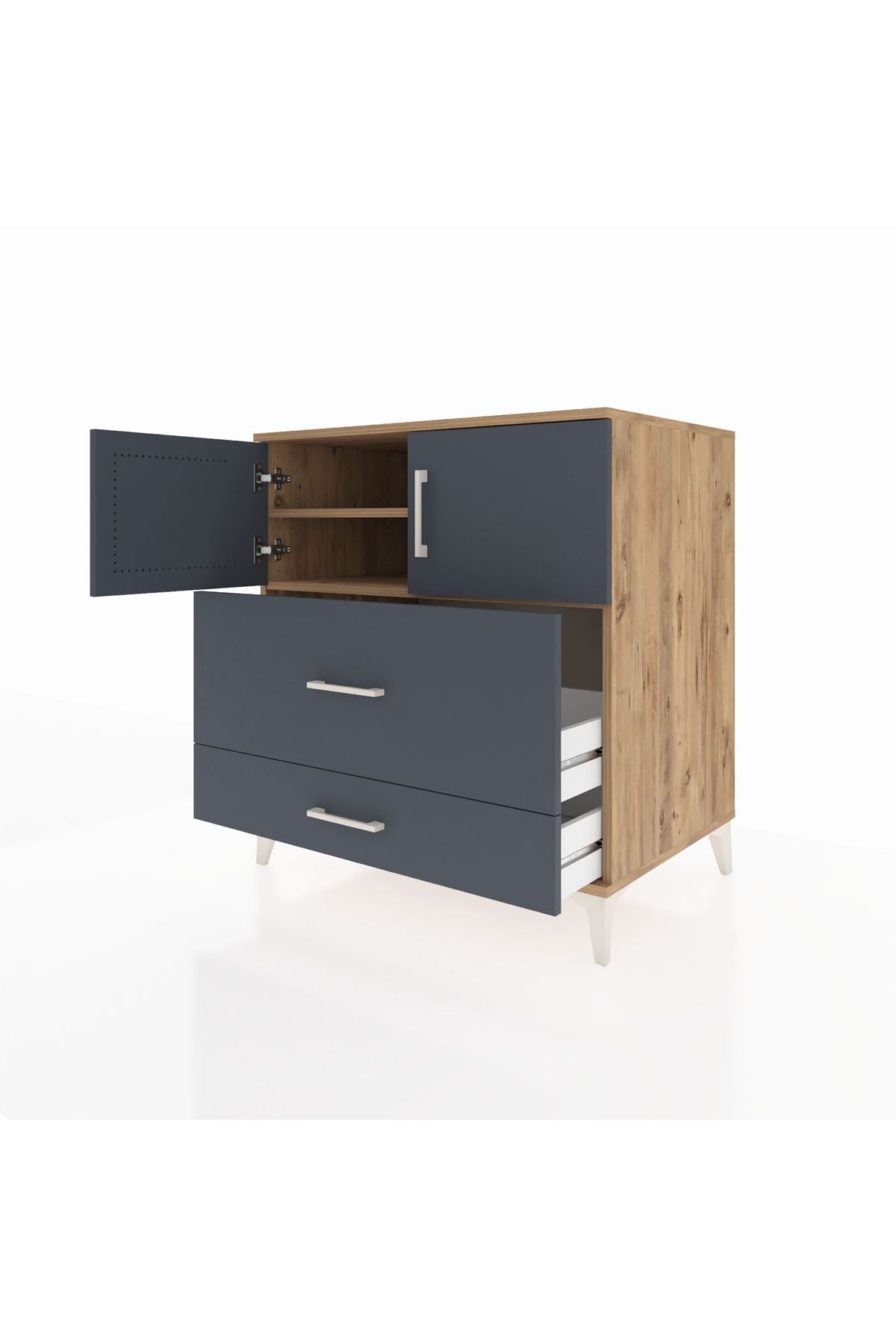 Kronos Şifonyer 2 Raflı 2 Çekmeceli 2 Kapaklı 88x59x96 Çam-Antrasit