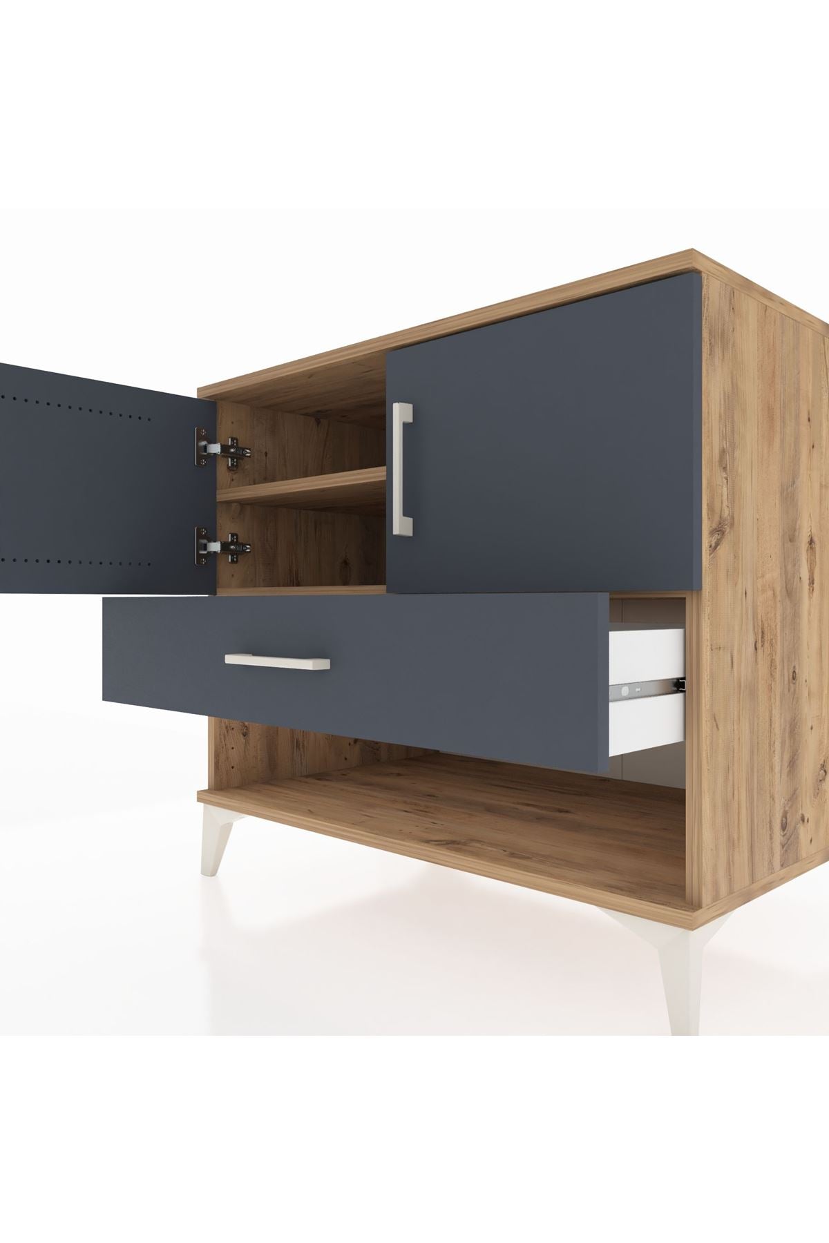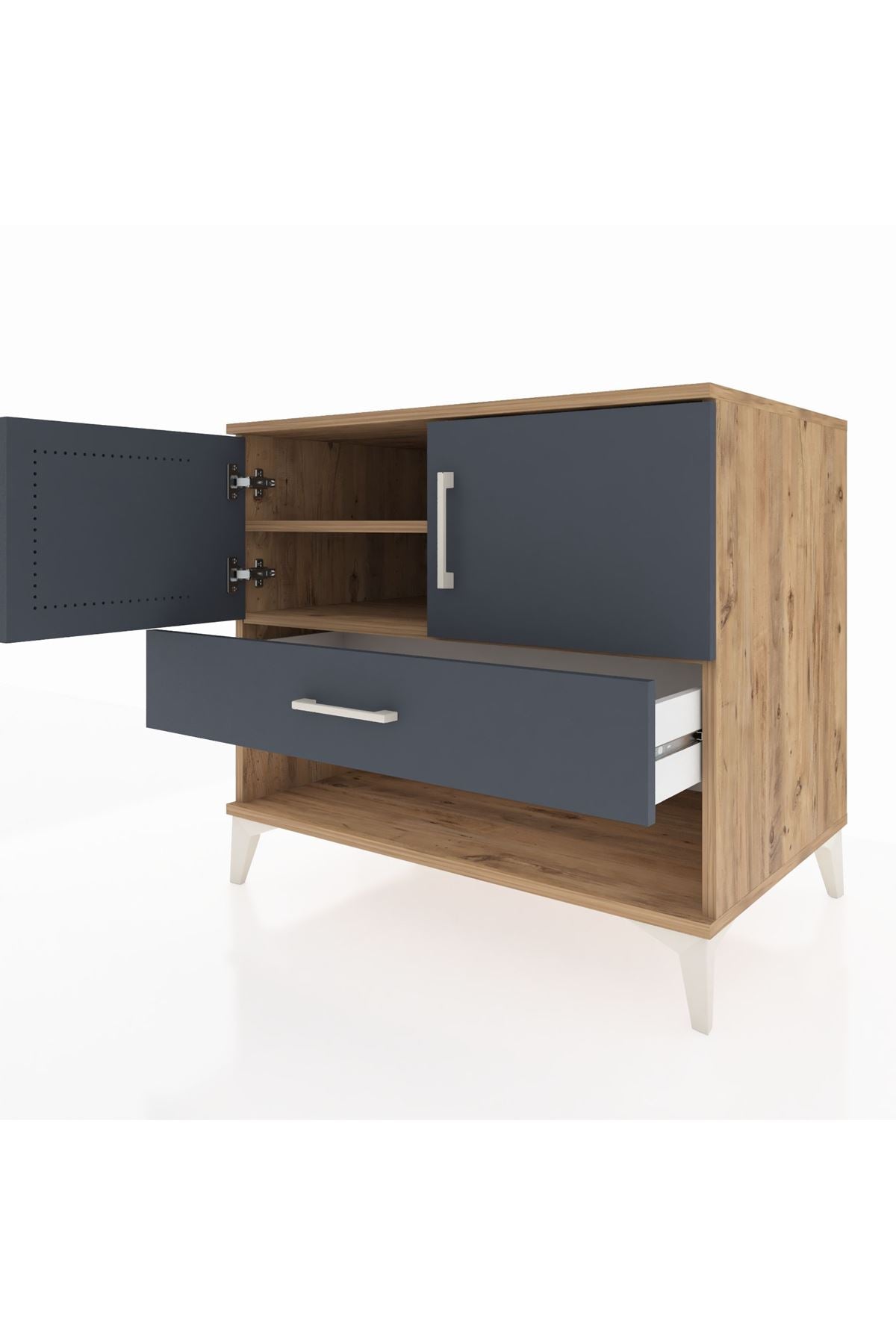 Kronos Şifonyer 2 Raflı Tek Çekmeceli 2 Kapaklı 88x59x80 Çam-Antrasit