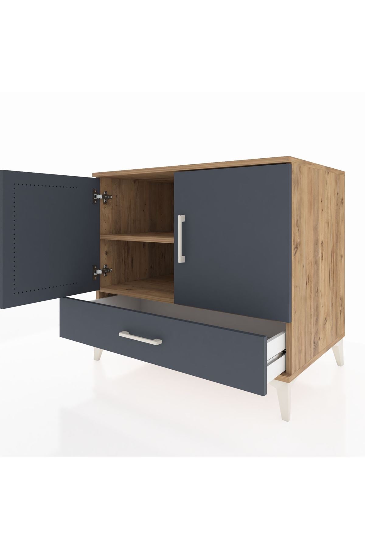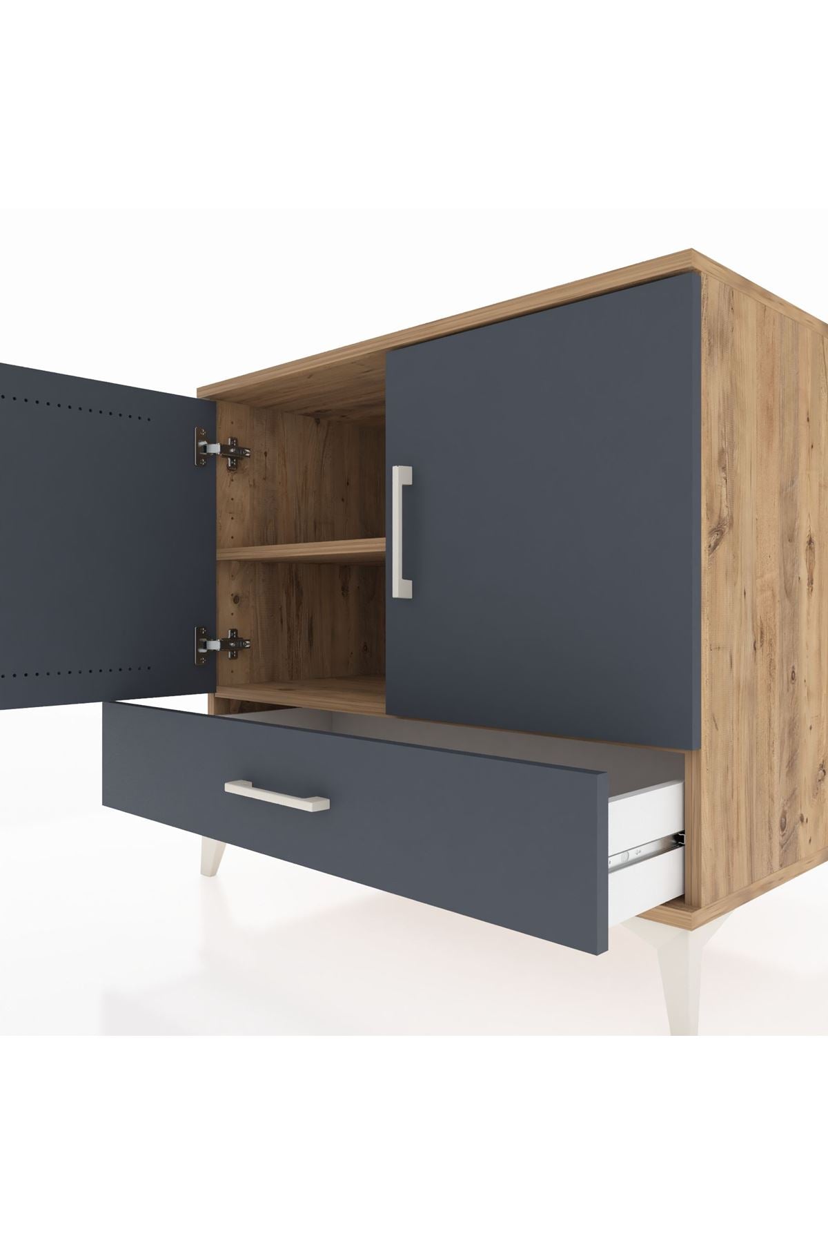 Kronos Şifonyer 2 Raflı Tek Çekmeceli 2 Kapaklı 88x59x80 Çam-Antrasit