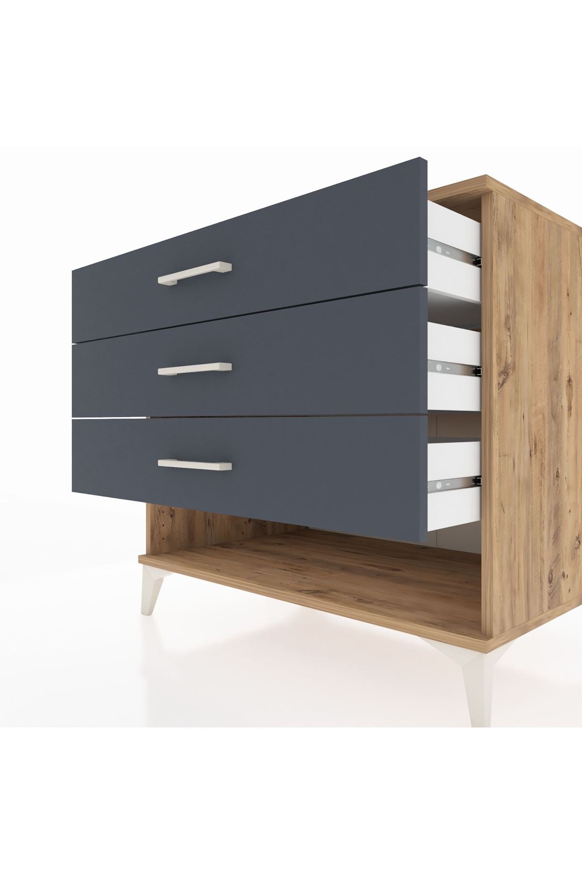 Kronos Şifonyer 3 Çekmeceli 88x59x80 Çam-Antrasit