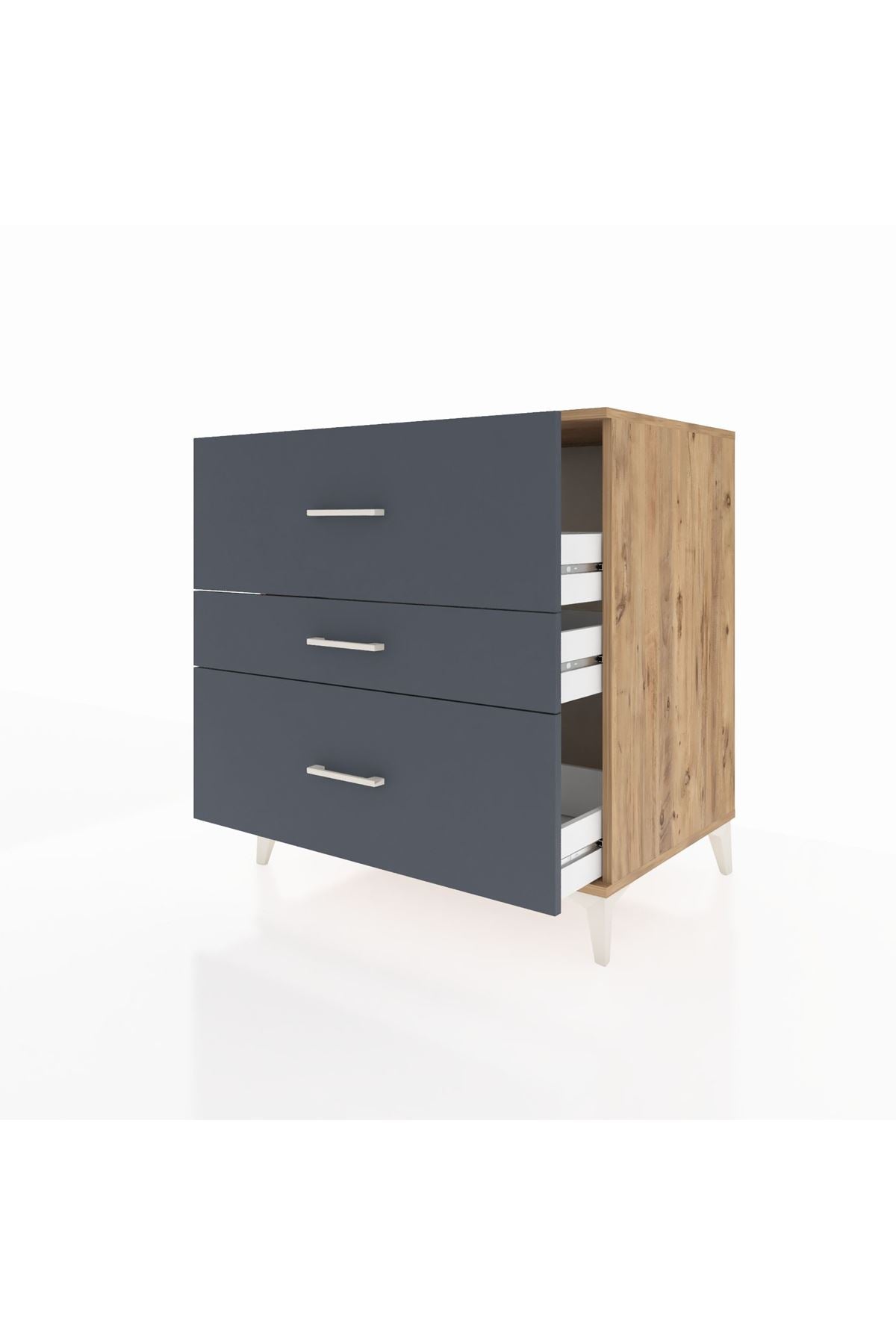 Kronos Şifonyer 3 Çekmeceli 88x59x96 Çam-Antrasit
