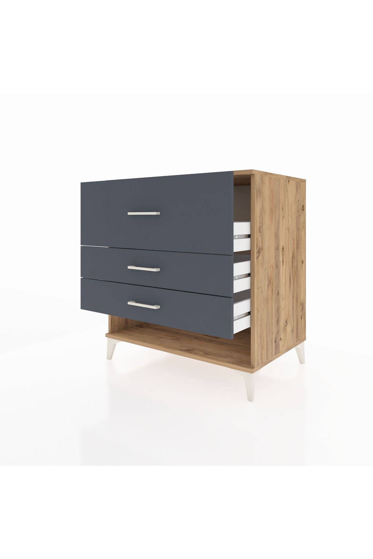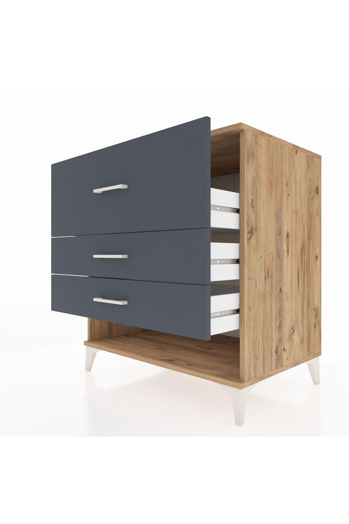 Kronos Şifonyer 3 Çekmeceli 88x59x96 Çam-Antrasit
