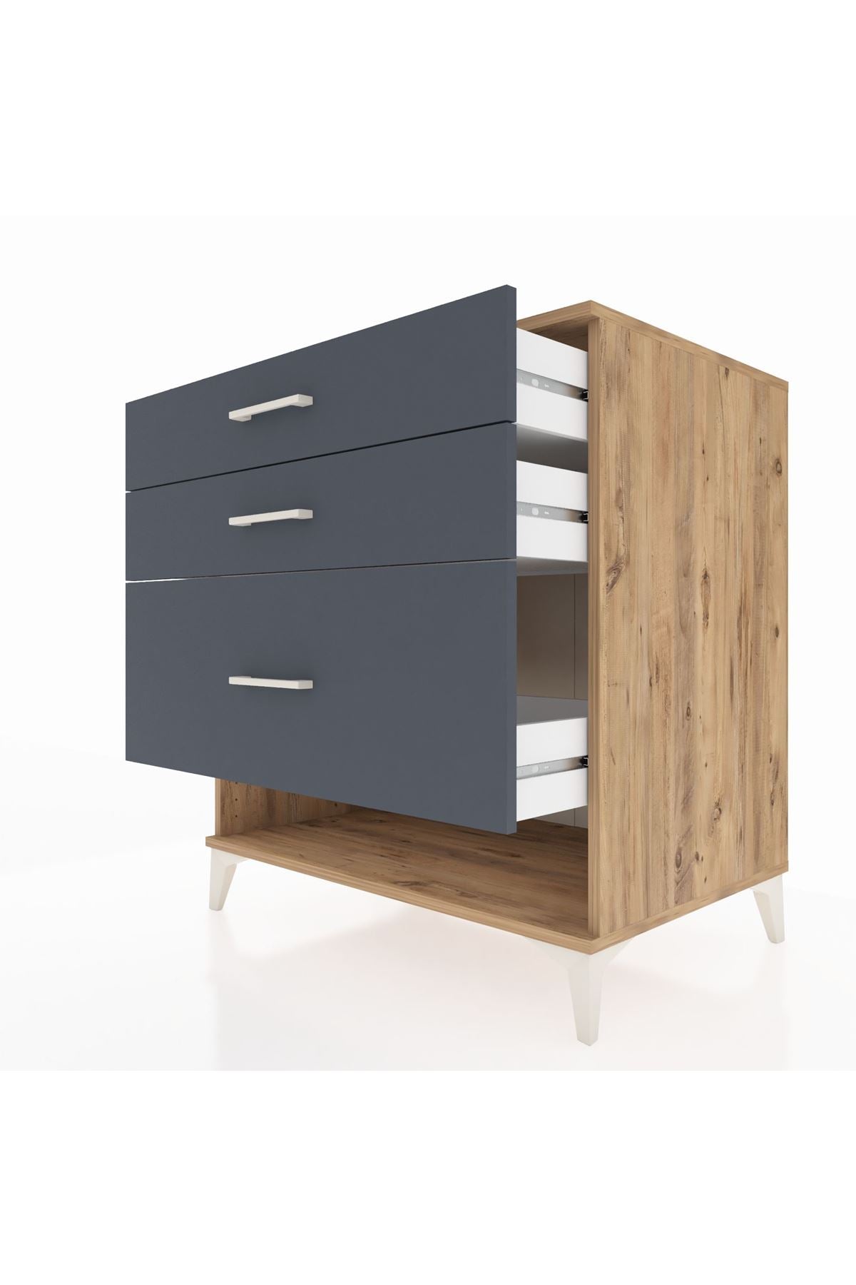 Kronos Şifonyer 3 Çekmeceli 88x59x96 Çam-Antrasit