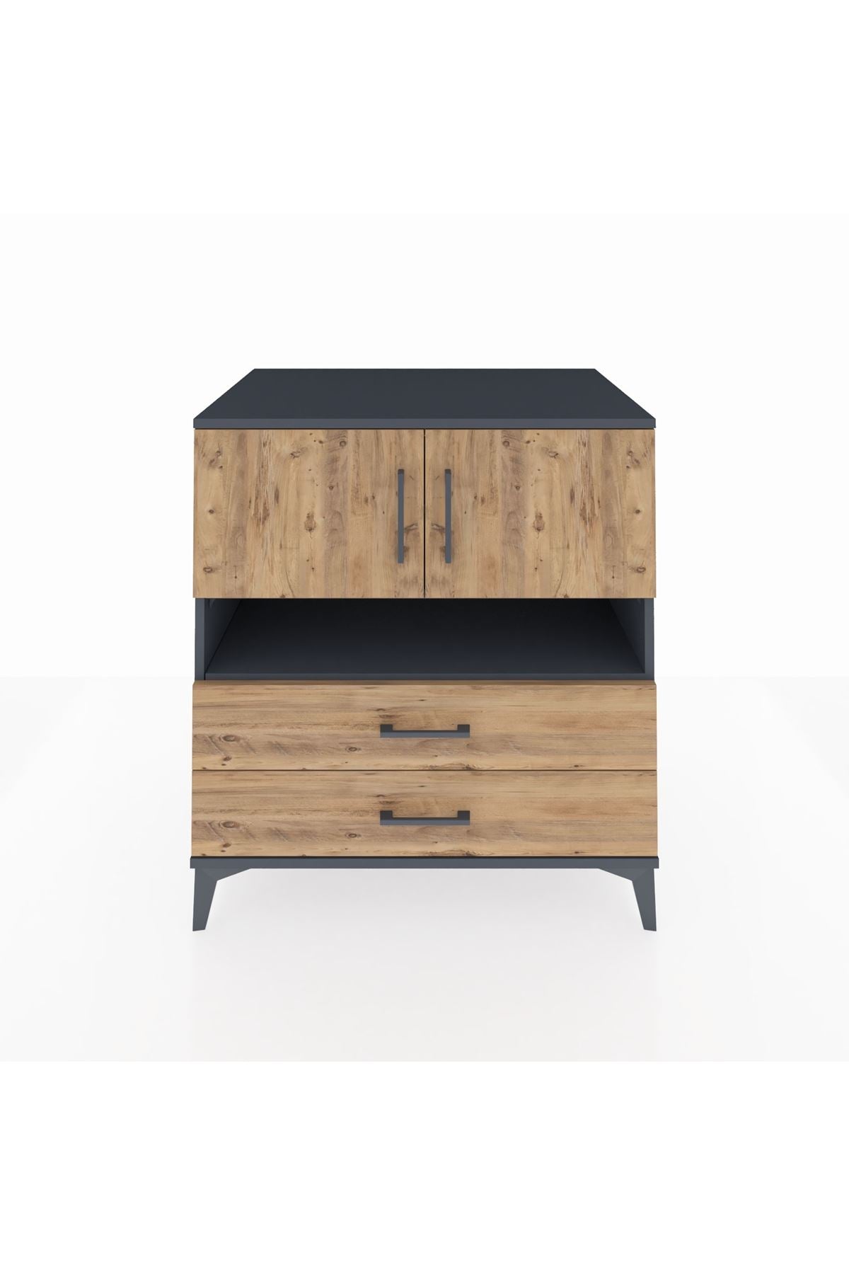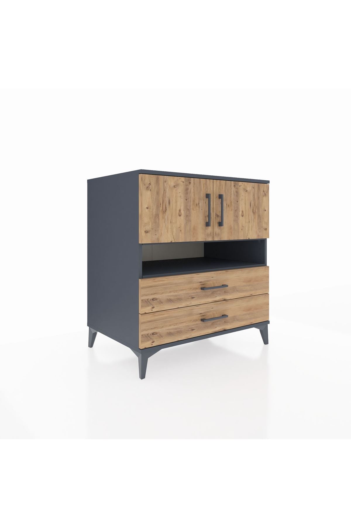 Kronos Şifonyer 3 Raflı 2 Çekmeceli 2 Kapaklı 88x59x96 Antrasit-Çam