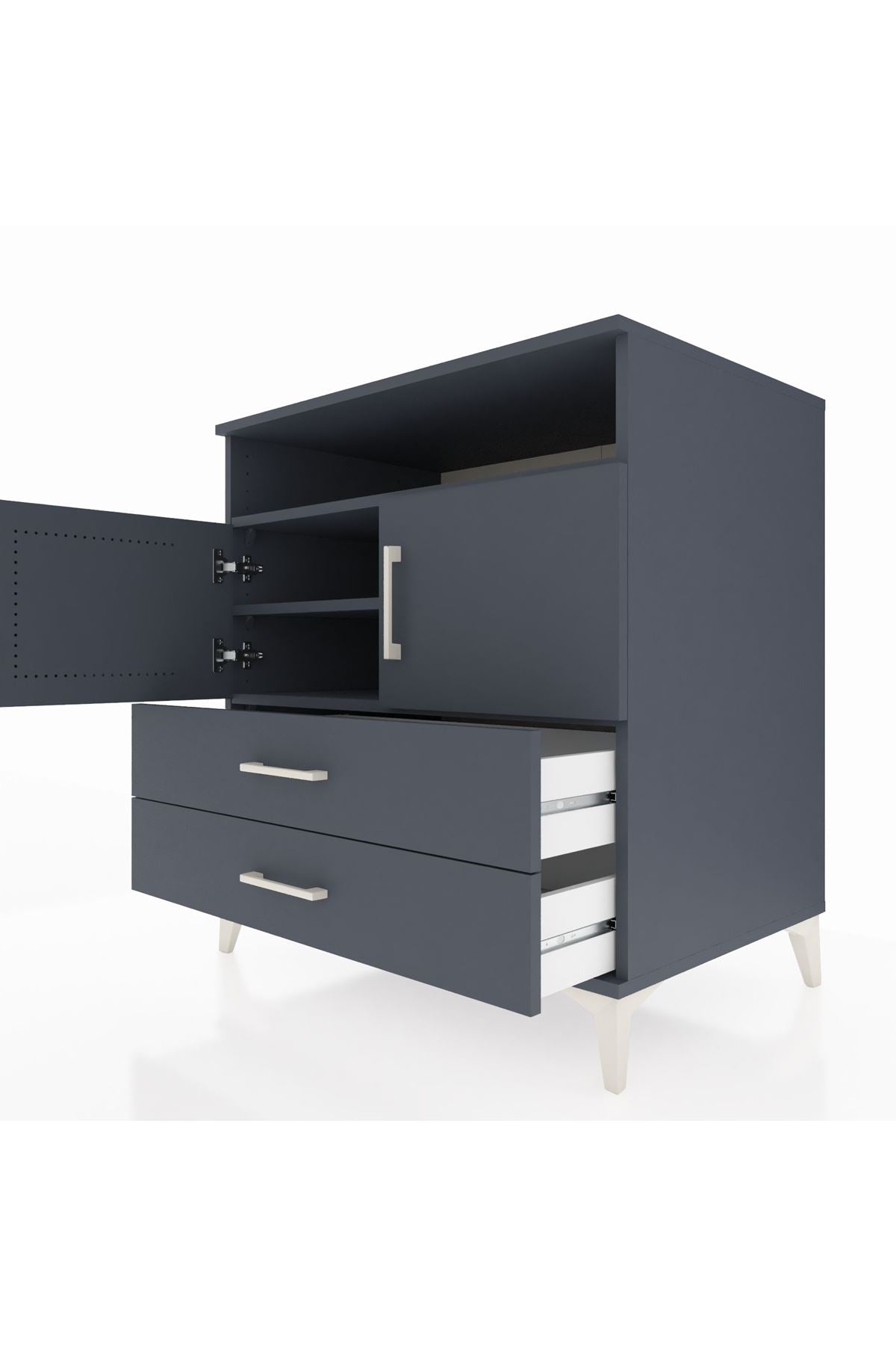 Kronos Şifonyer 3 Raflı 2 Çekmeceli 2 Kapaklı 88x59x96 Antrasit-Antrasit