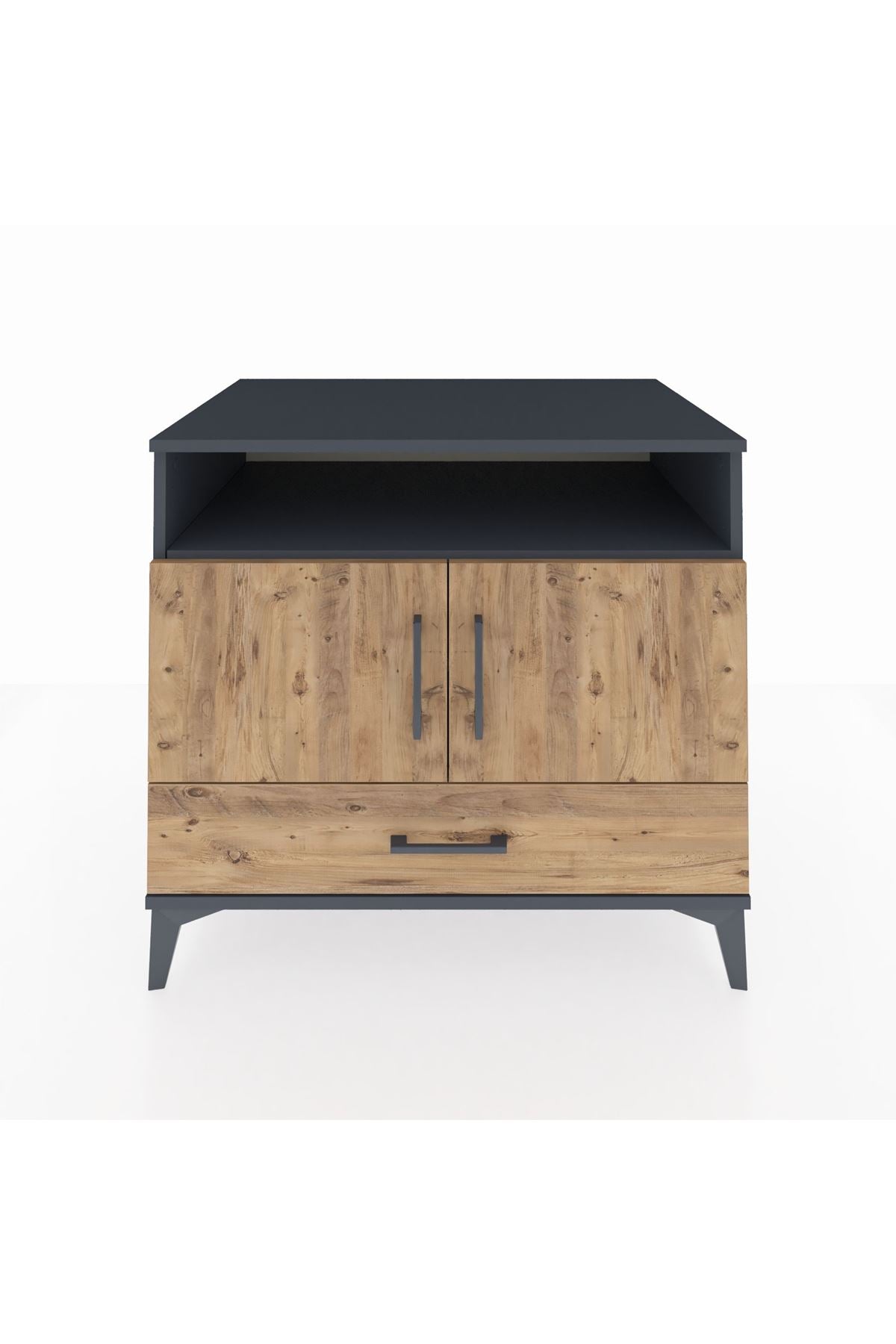 Kronos Şifonyer 3 Raflı Tek Çekmeceli 2 Kapaklı 88x59x80 Antrasit-Çam