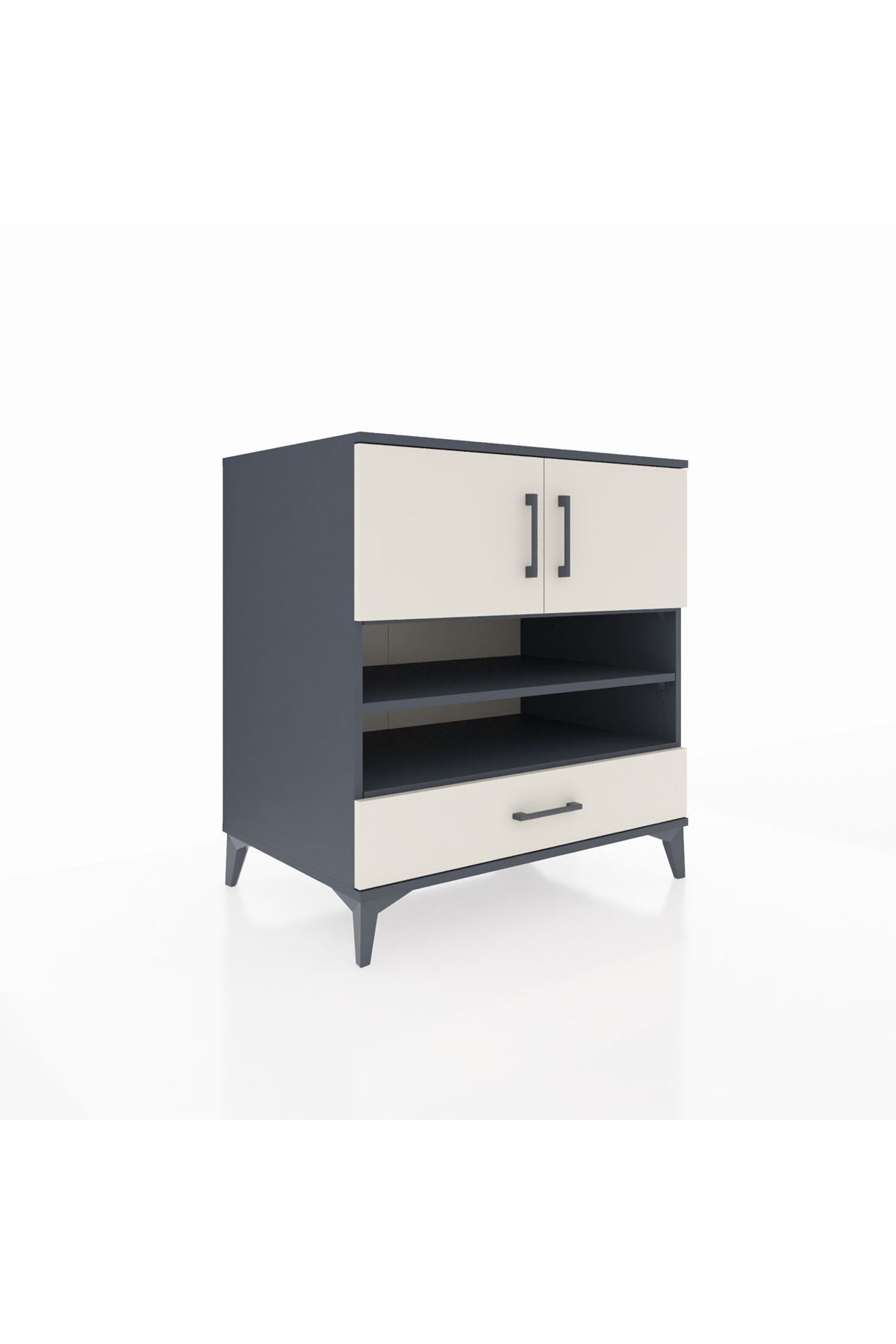 Kronos Şifonyer 4 Raflı Tek Çekmeceli 2 Kapaklı 88x59x96 Antrasit-Aytaşı