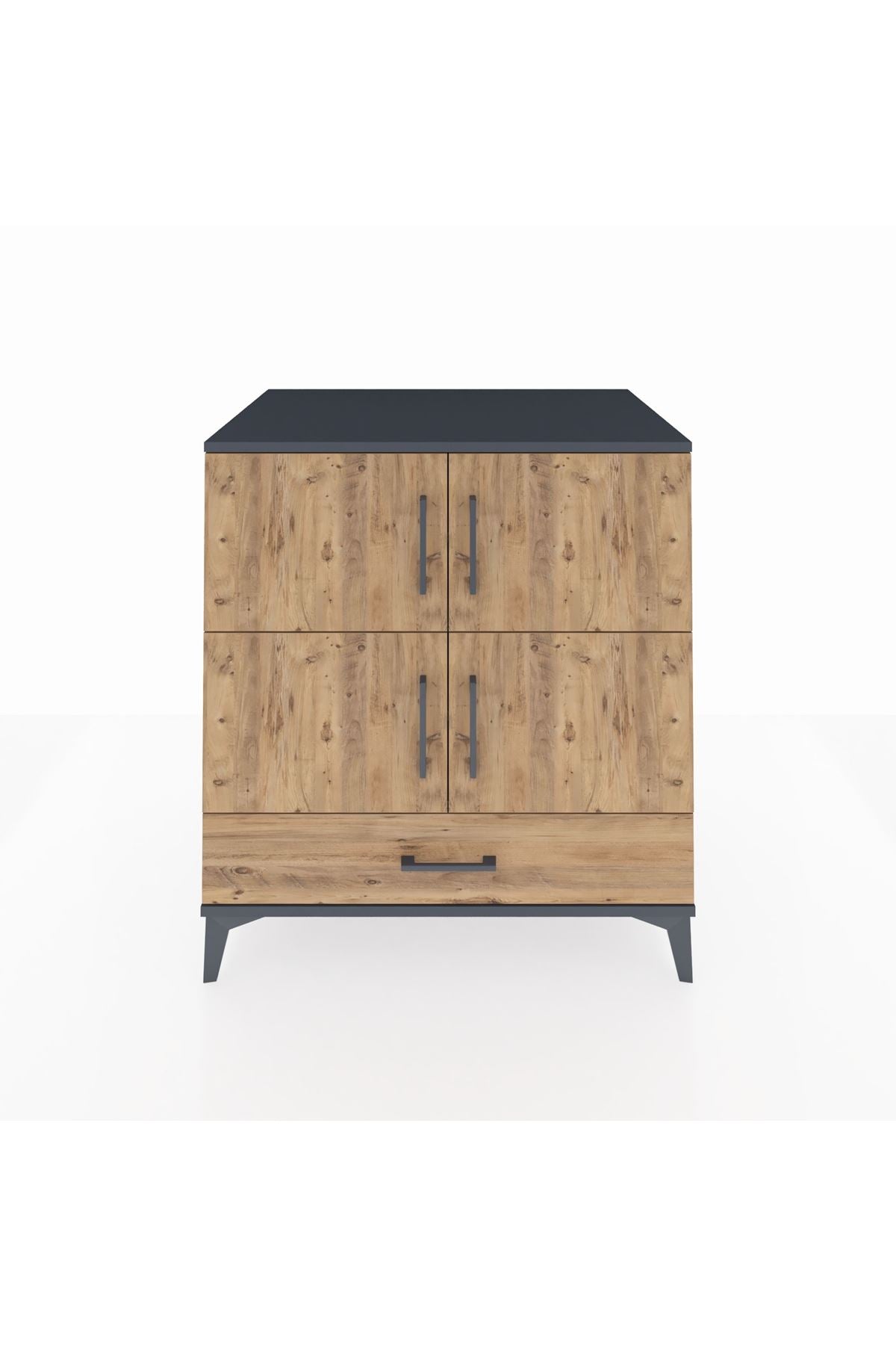 Kronos Şifonyer 4 Raflı Tek Çekmeceli 4 Kapaklı 88x59x96 Antrasit-Çam