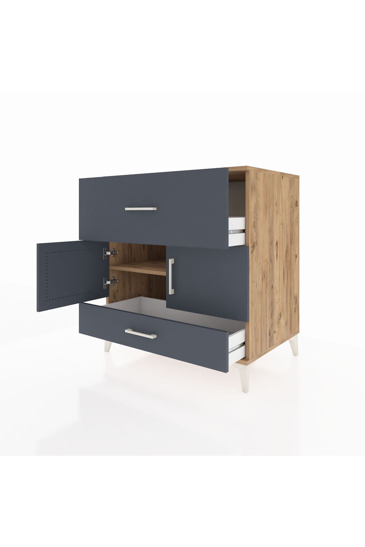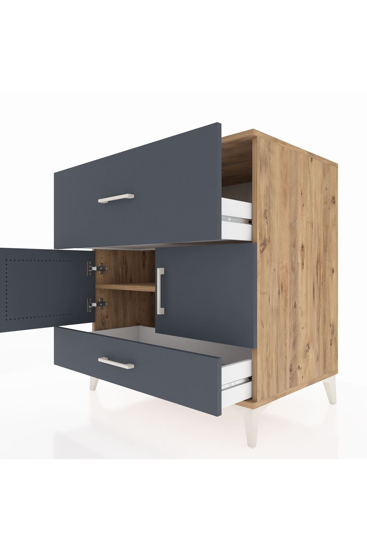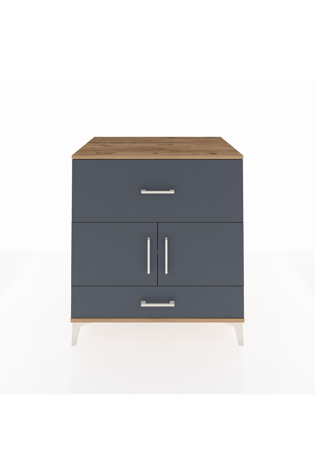 Kronos Şifonyer Tek Raflı 2 Çekmeceli 2 Kapaklı 88x59x96 Çam-Antrasit