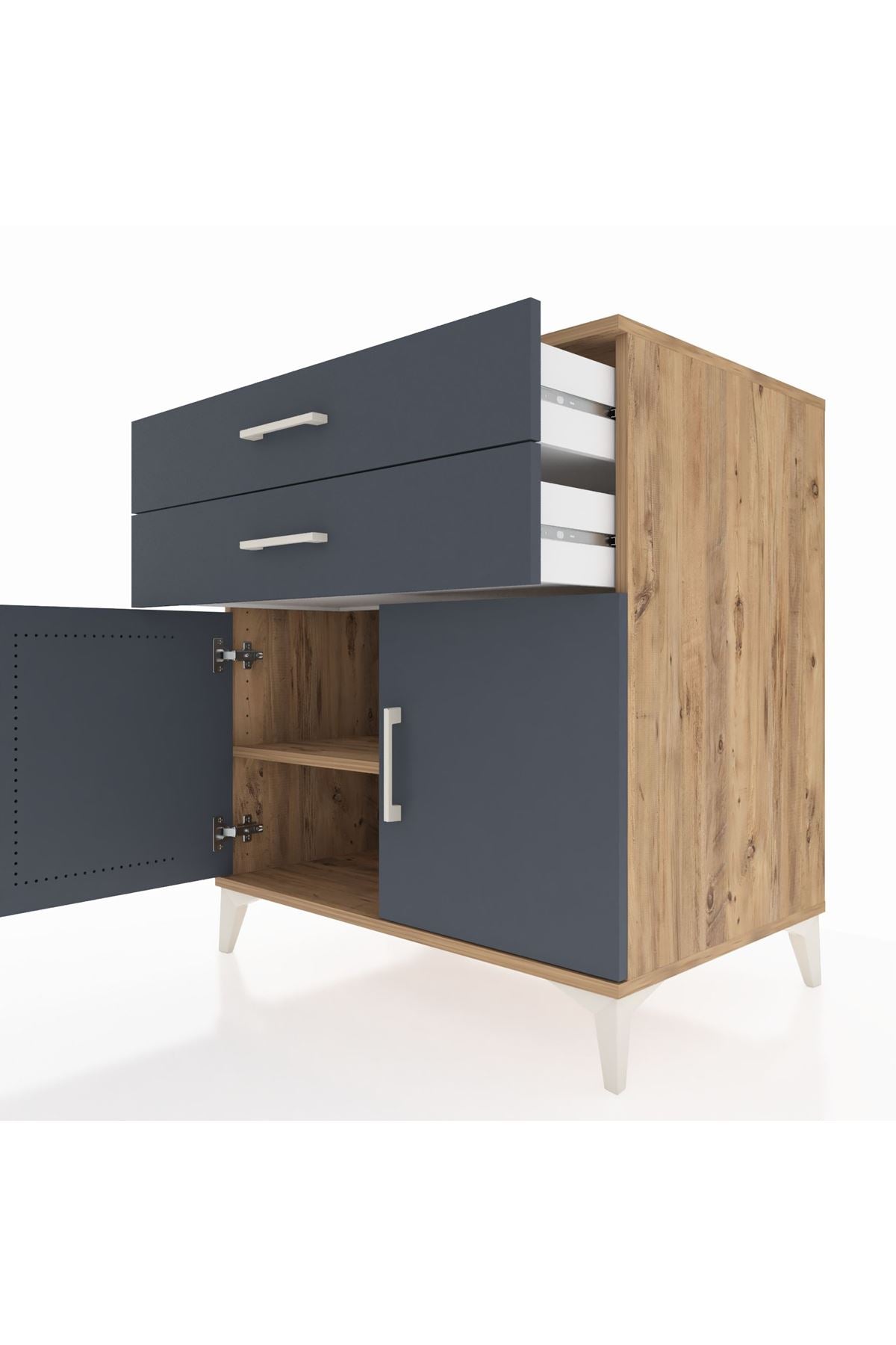 Kronos Şifonyer Tek Raflı 2 Çekmeceli 2 Kapaklı 88x59x96 Çam-Antrasit