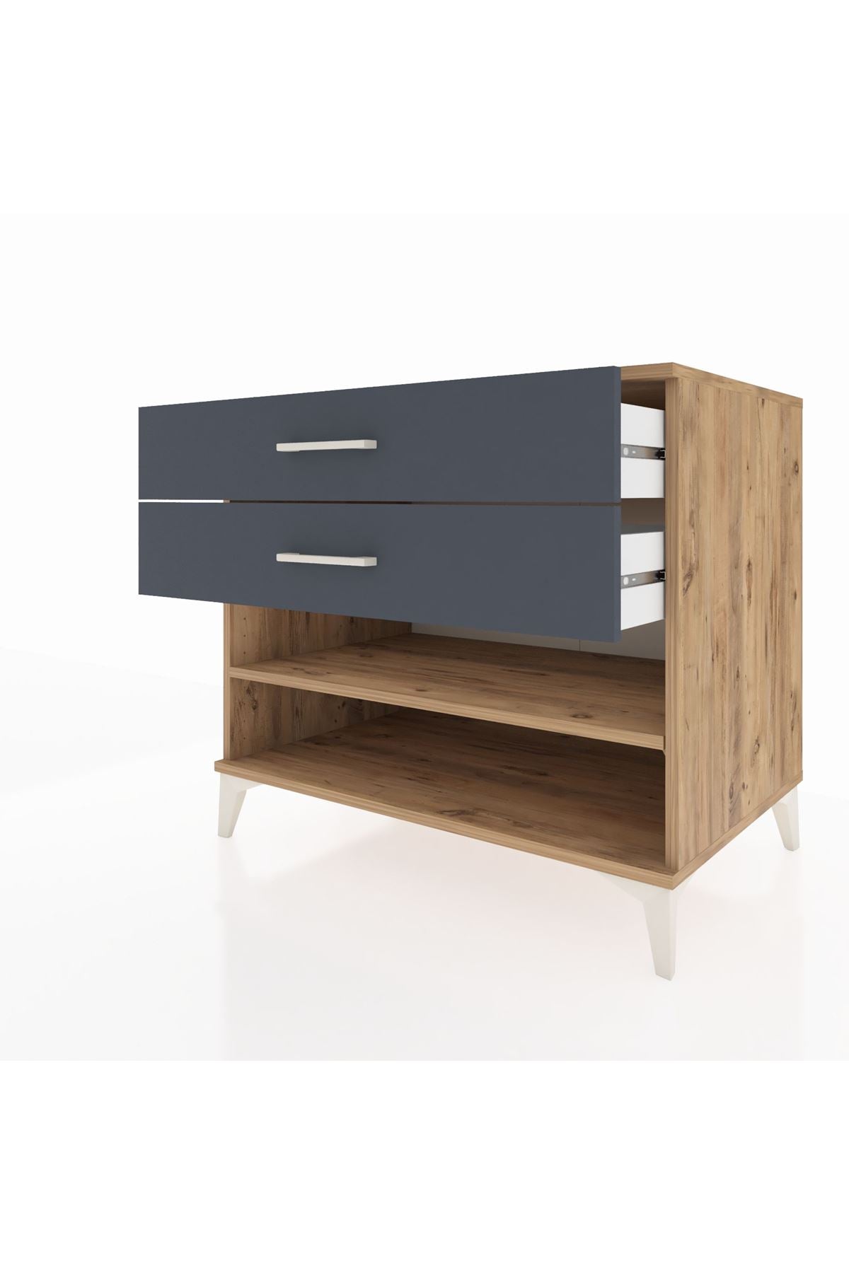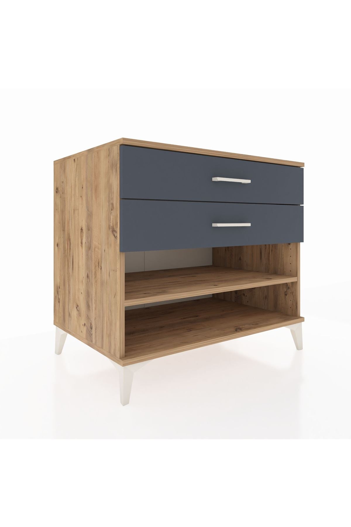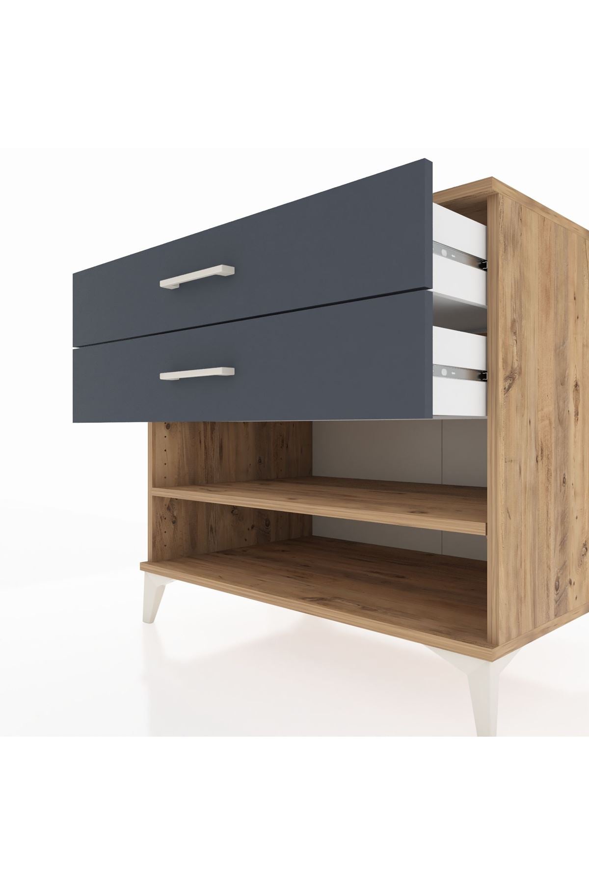 Kronos Şifonyer Tek Raflı 2 Çekmeceli 88x59x80 Çam-Antrasit
