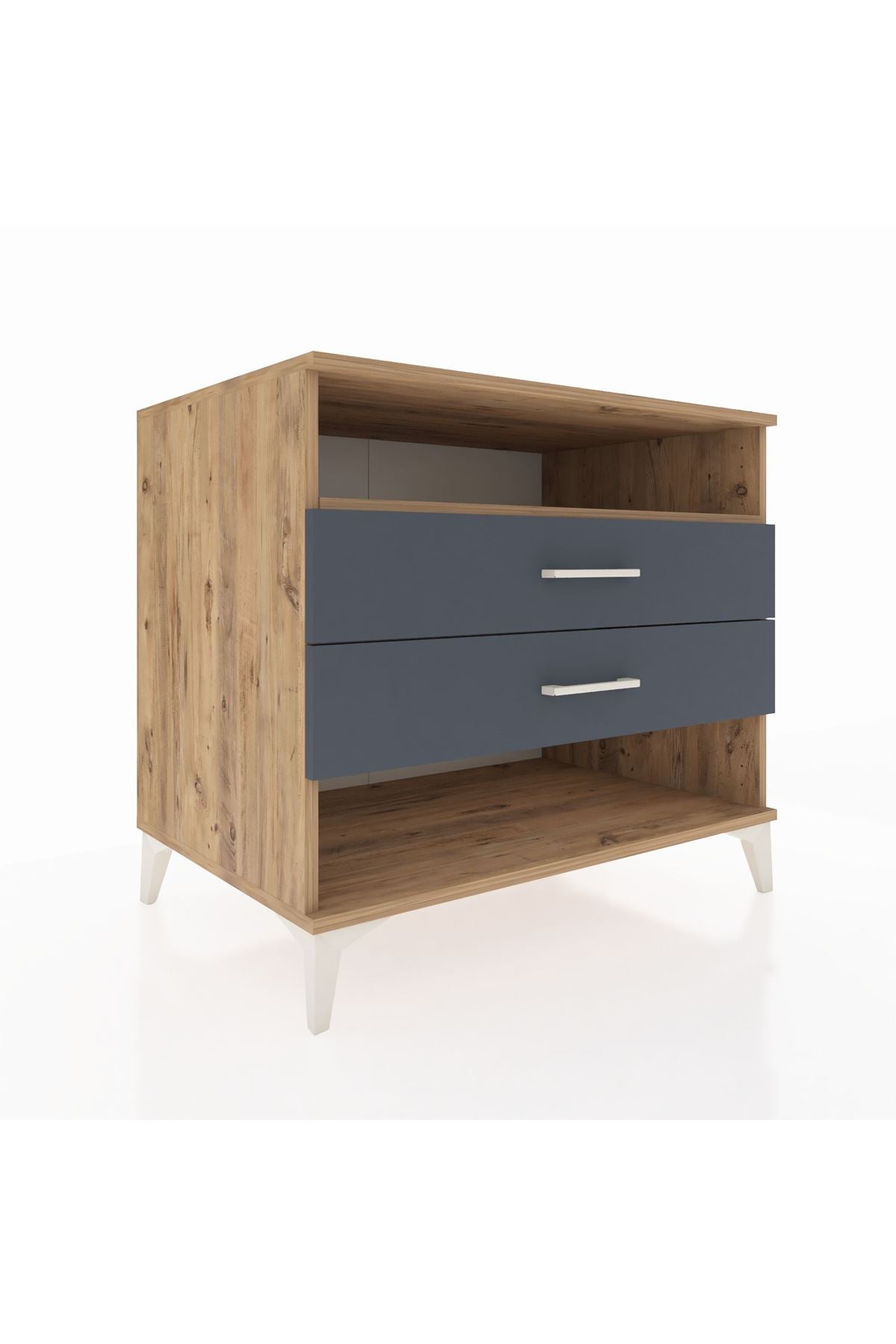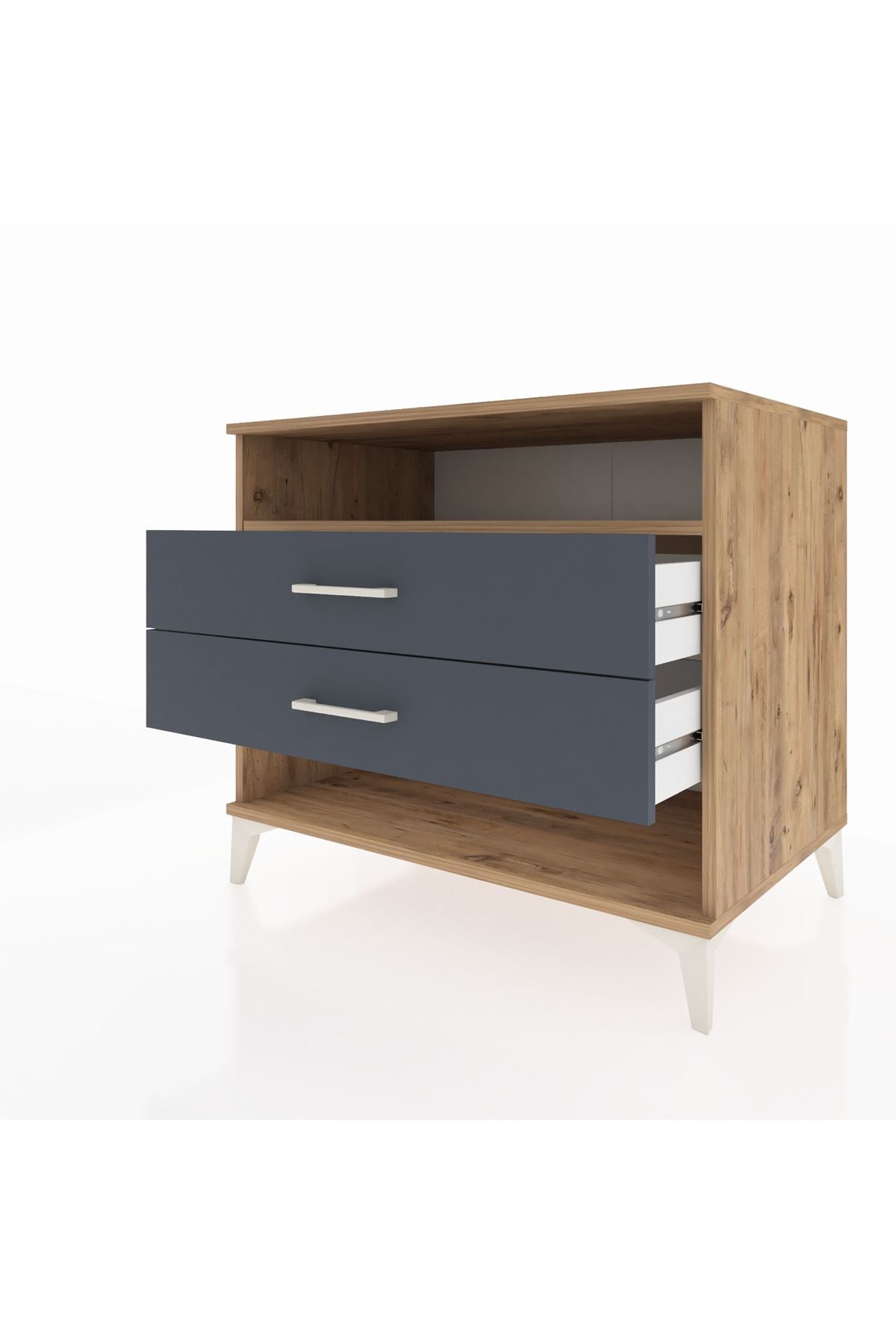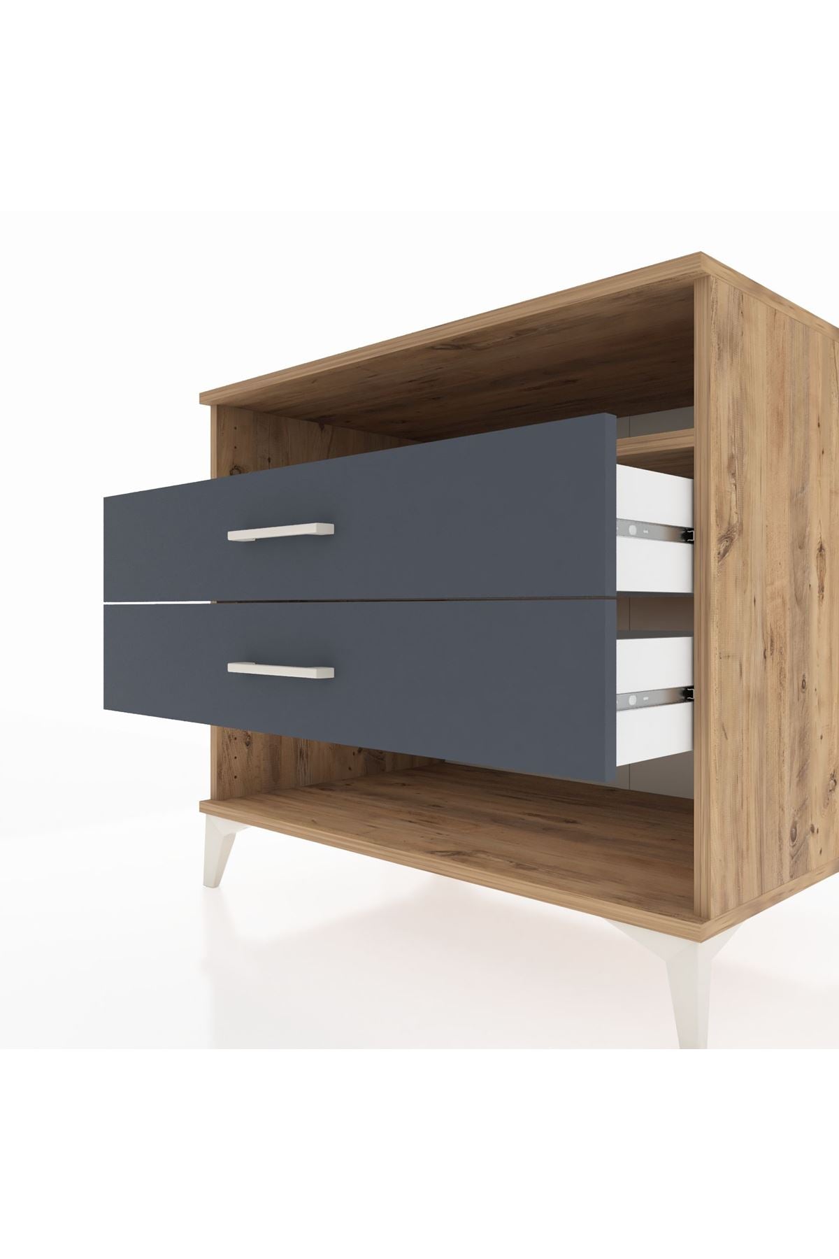 Kronos Şifonyer Tek Raflı 2 Çekmeceli 88x59x80 Çam-Antrasit