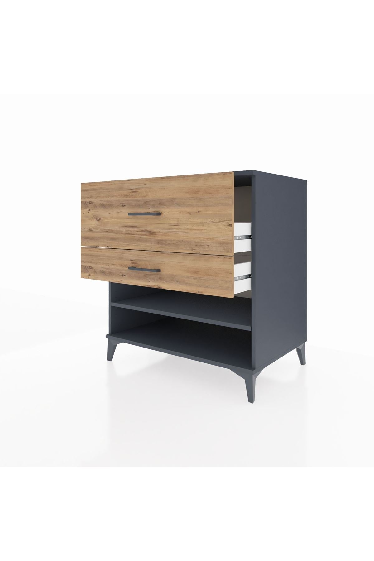 Kronos Şifonyer Tek Raflı 2 Çekmeceli 88x59x96 Antrasit-Çam