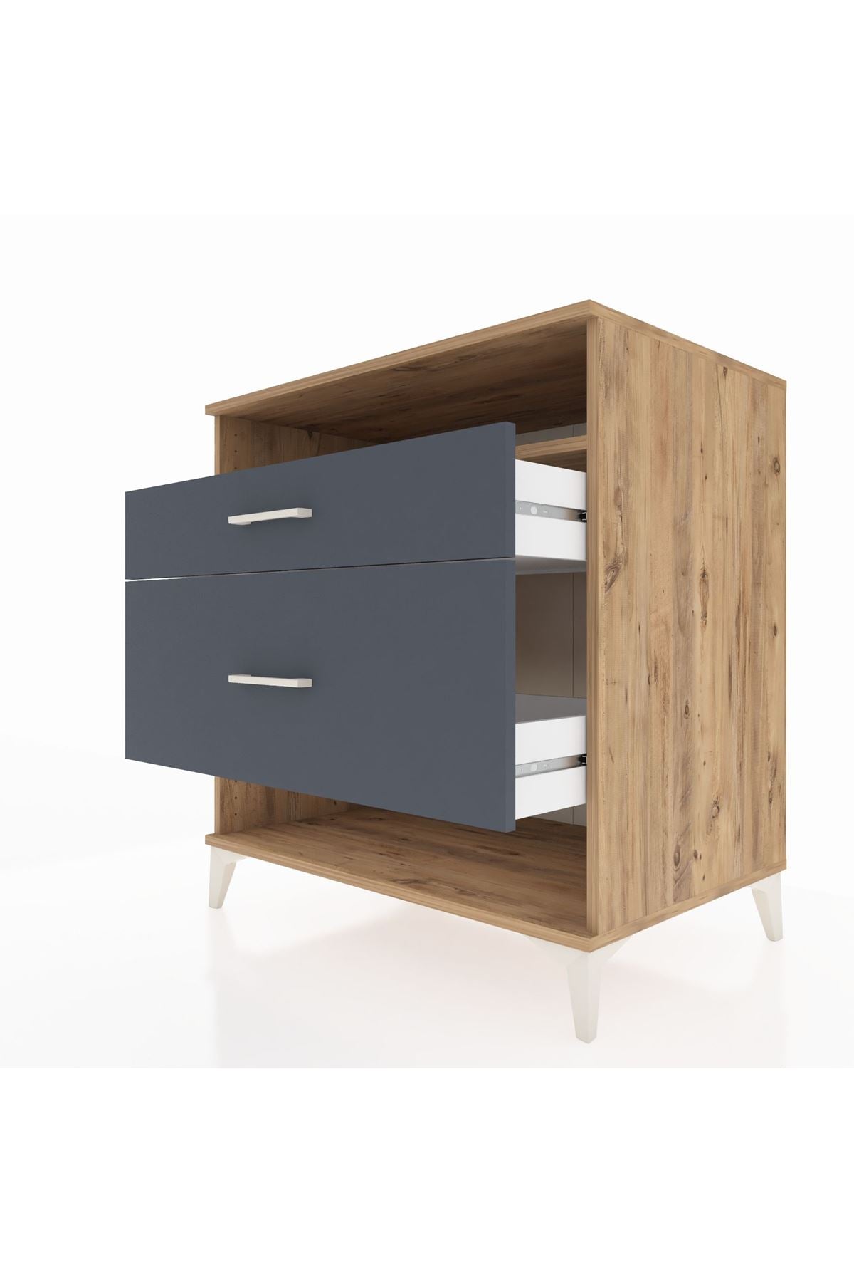 Kronos Şifonyer Tek Raflı 2 Çekmeceli 88x59x96 Çam-Antrasit