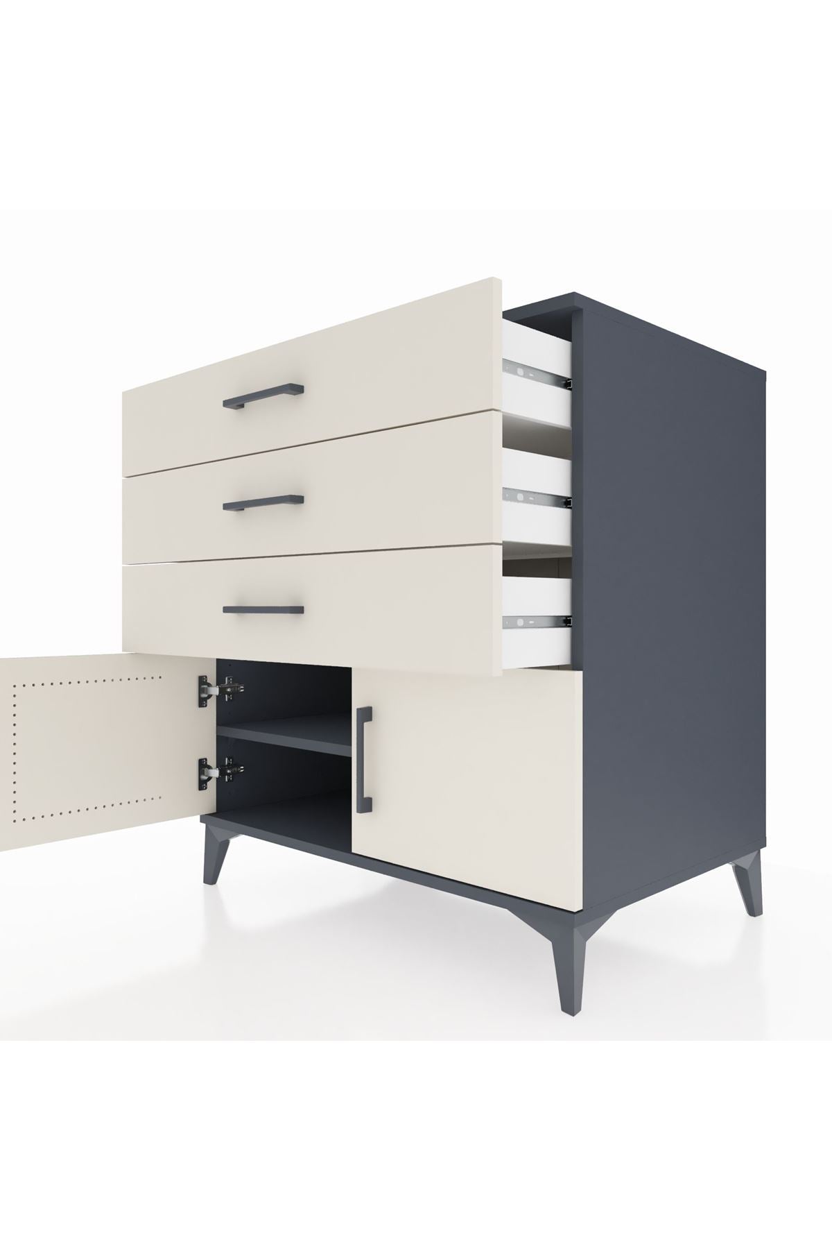 Kronos Şifonyer Tek Raflı 3 Çekmeceli 2 Kapaklı 88x59x96 Antrasit-Aytaşı