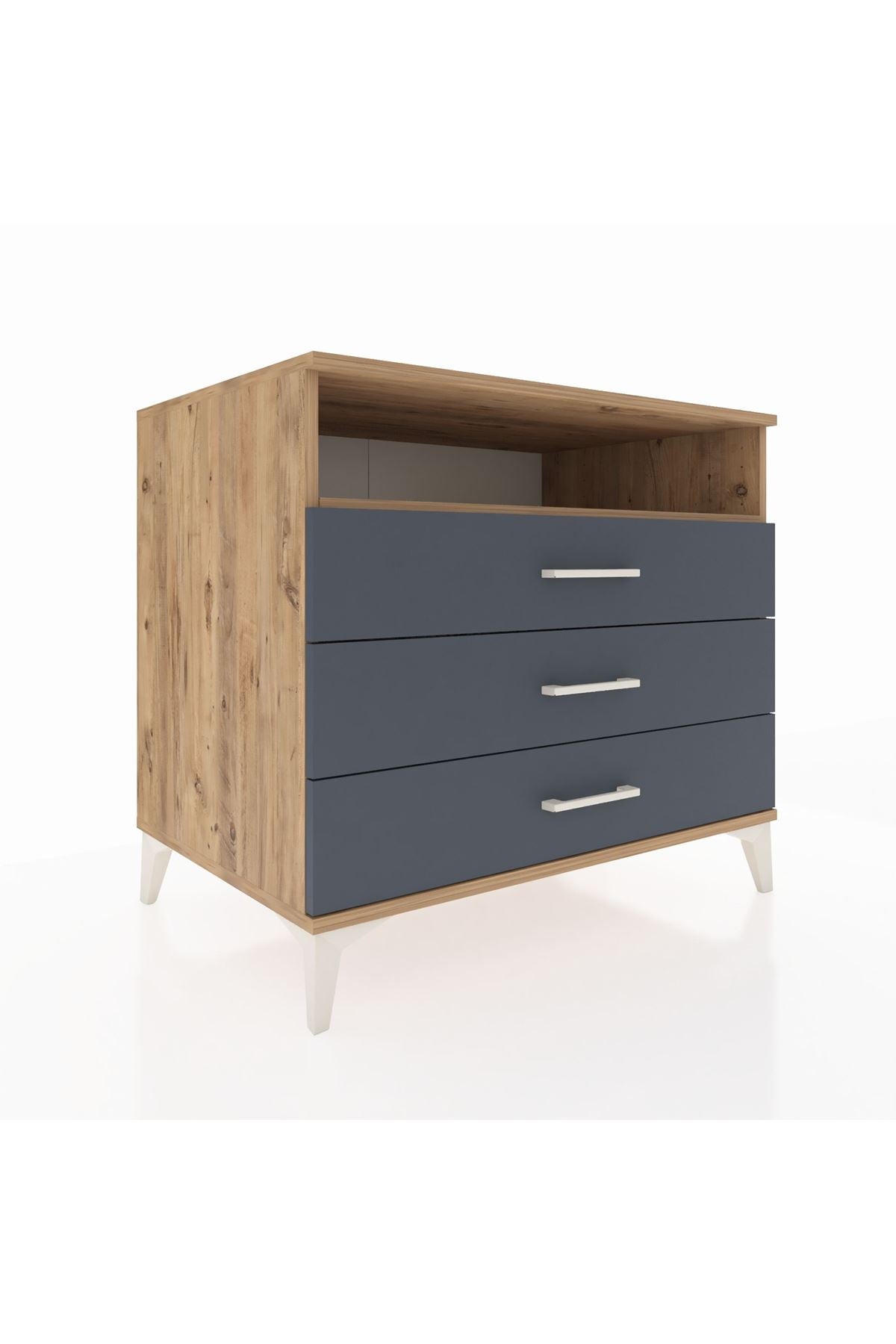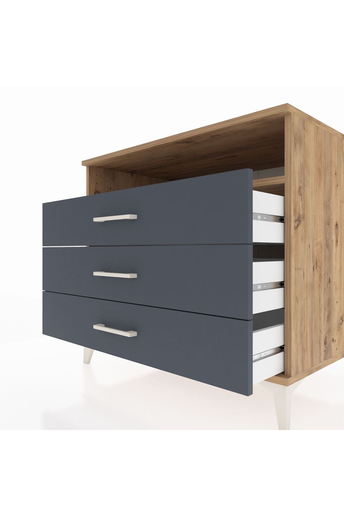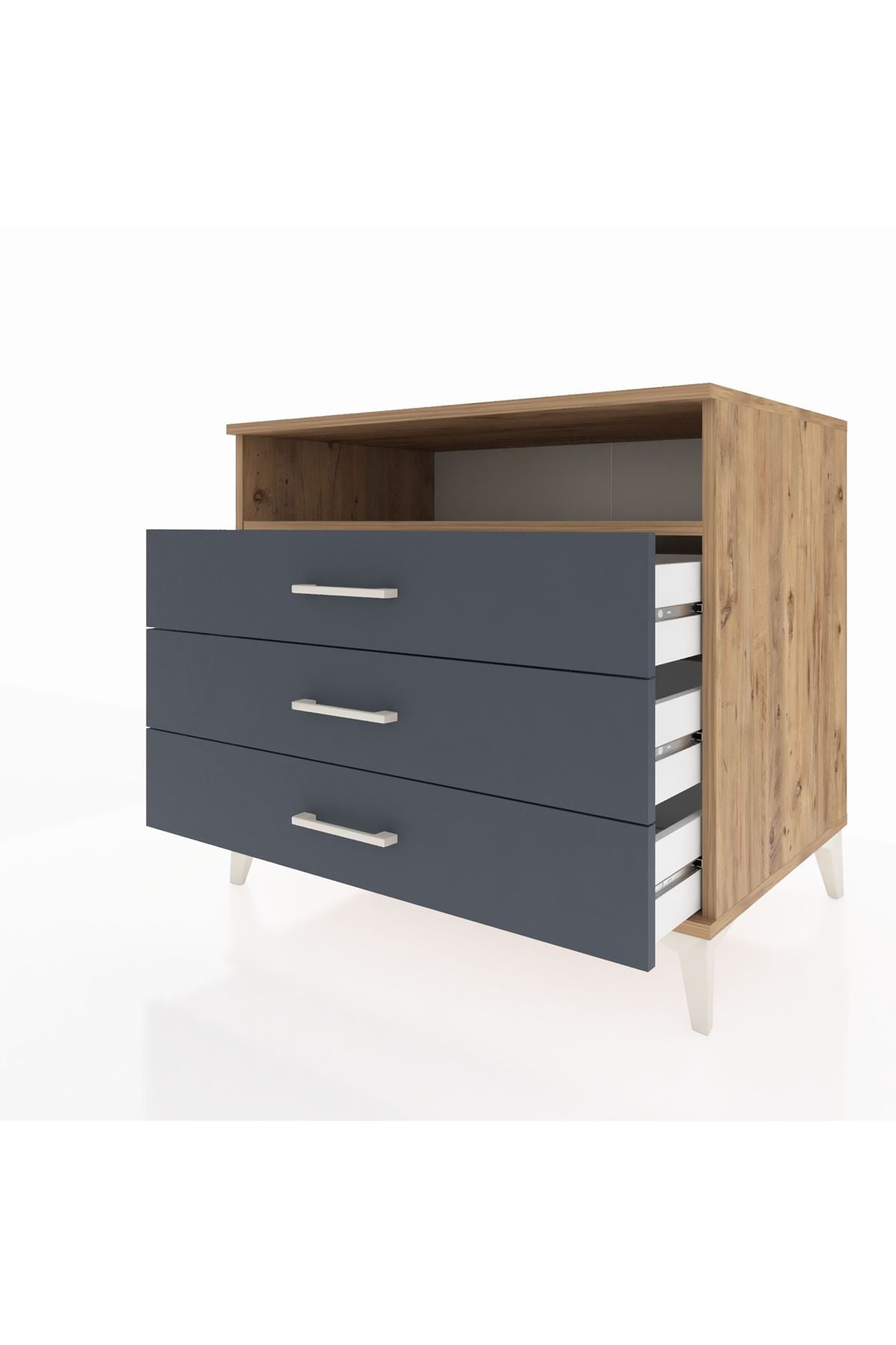 Kronos Şifonyer Tek Raflı 3 Çekmeceli 88x59x80 Çam-Antrasit