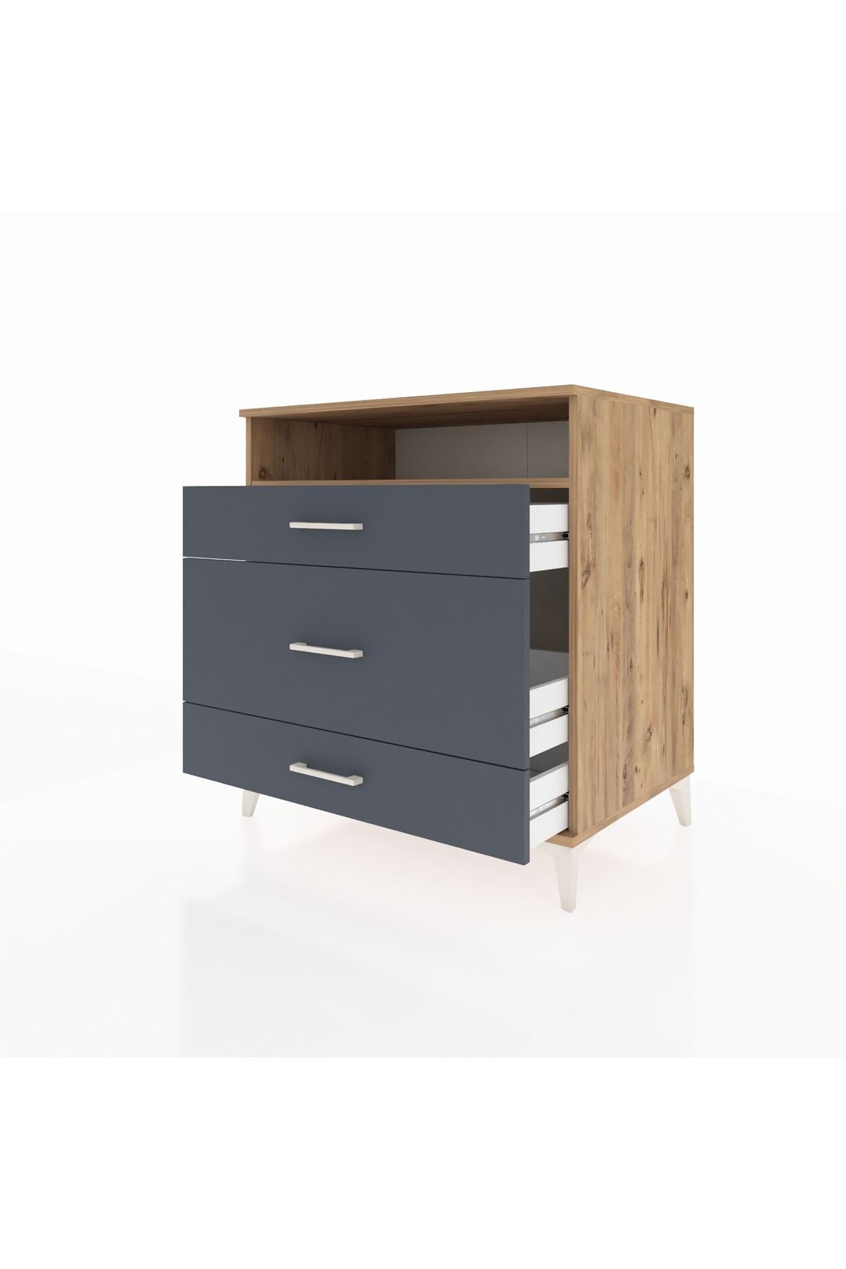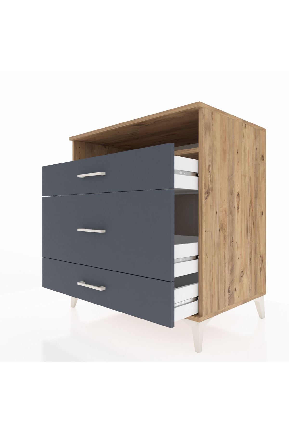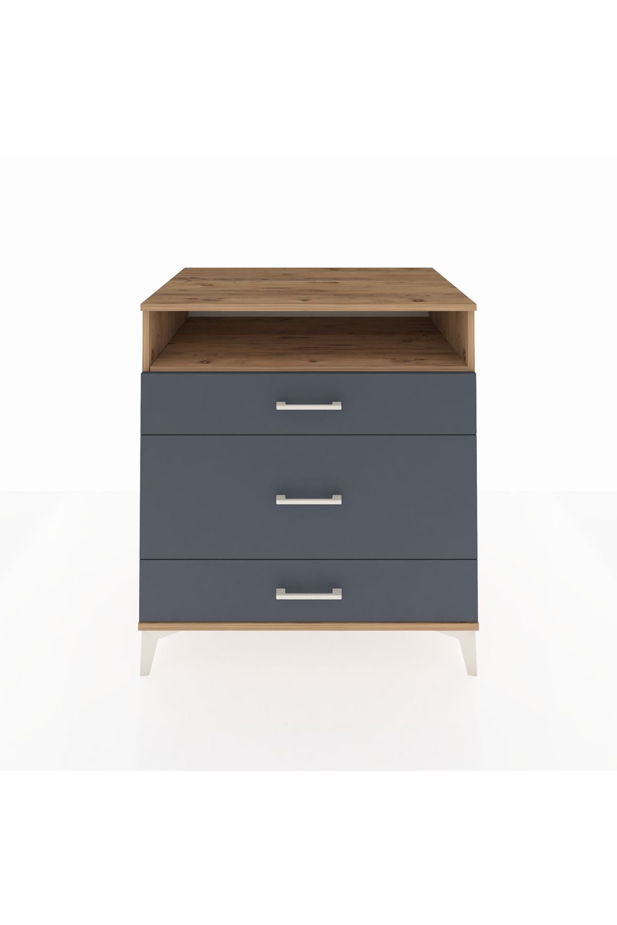 Kronos Şifonyer Tek Raflı 3 Çekmeceli 88x59x96 Çam-Antrasit