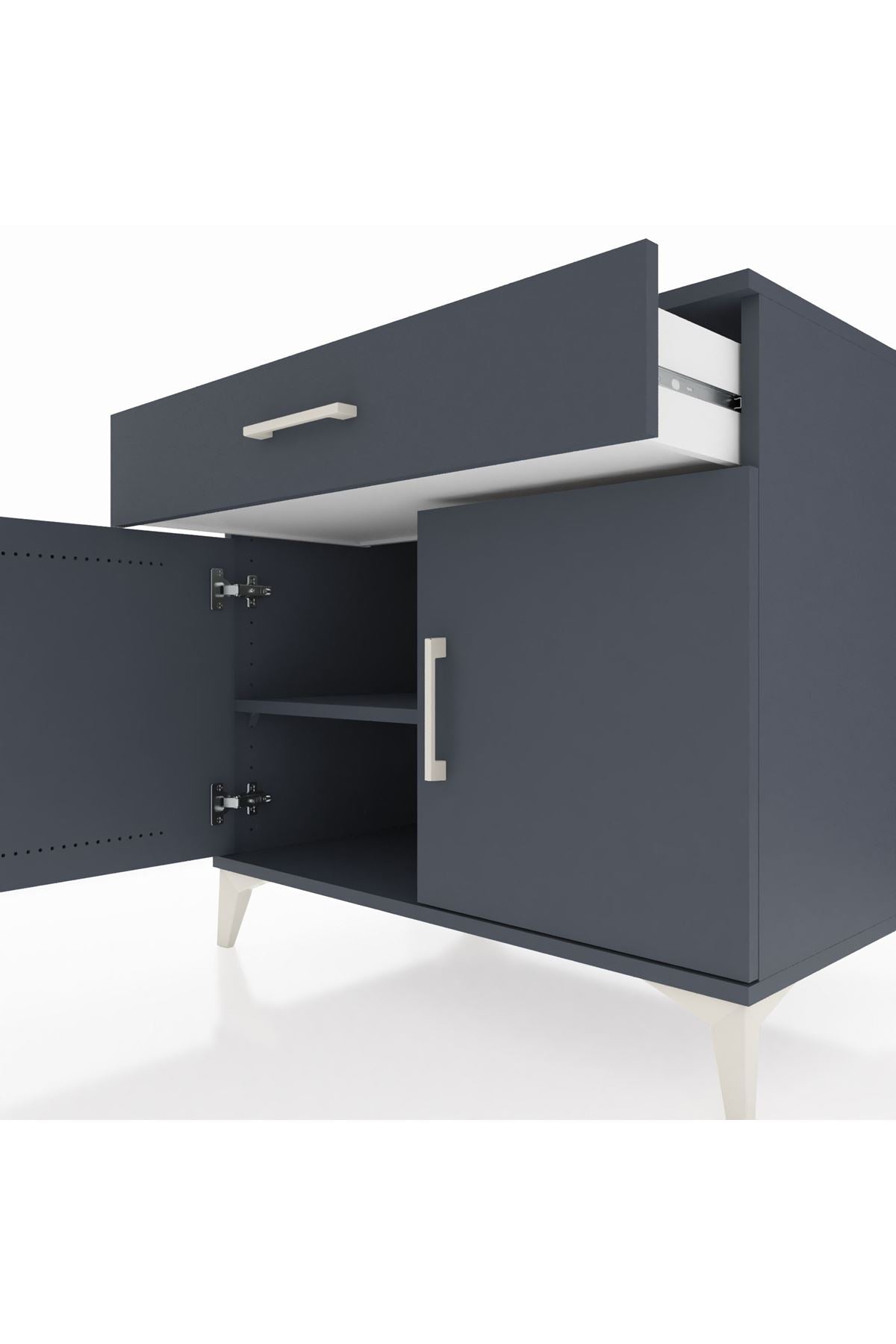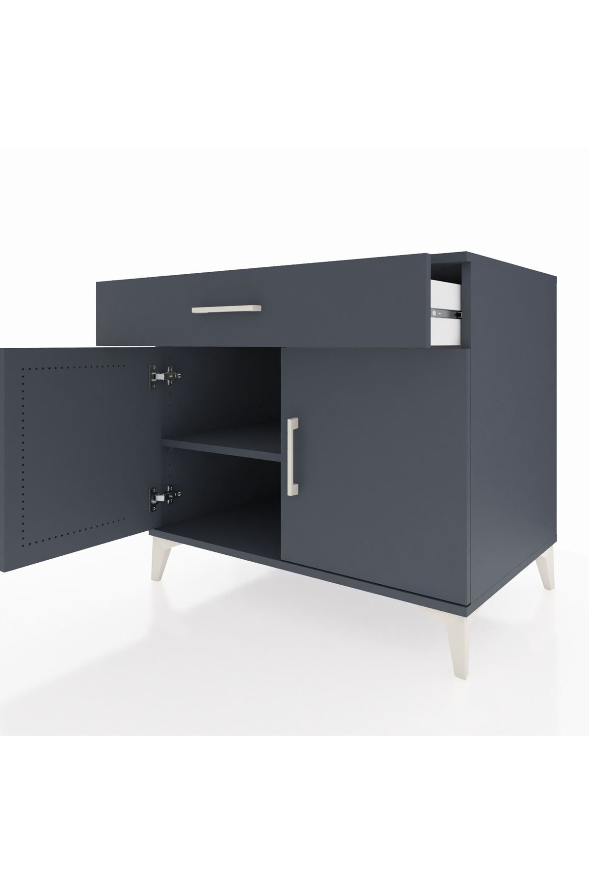 Kronos Şifonyer Tek Raflı Tek Çekmeceli 2 Kapaklı 88x59x80 Antrasit-Antrasit