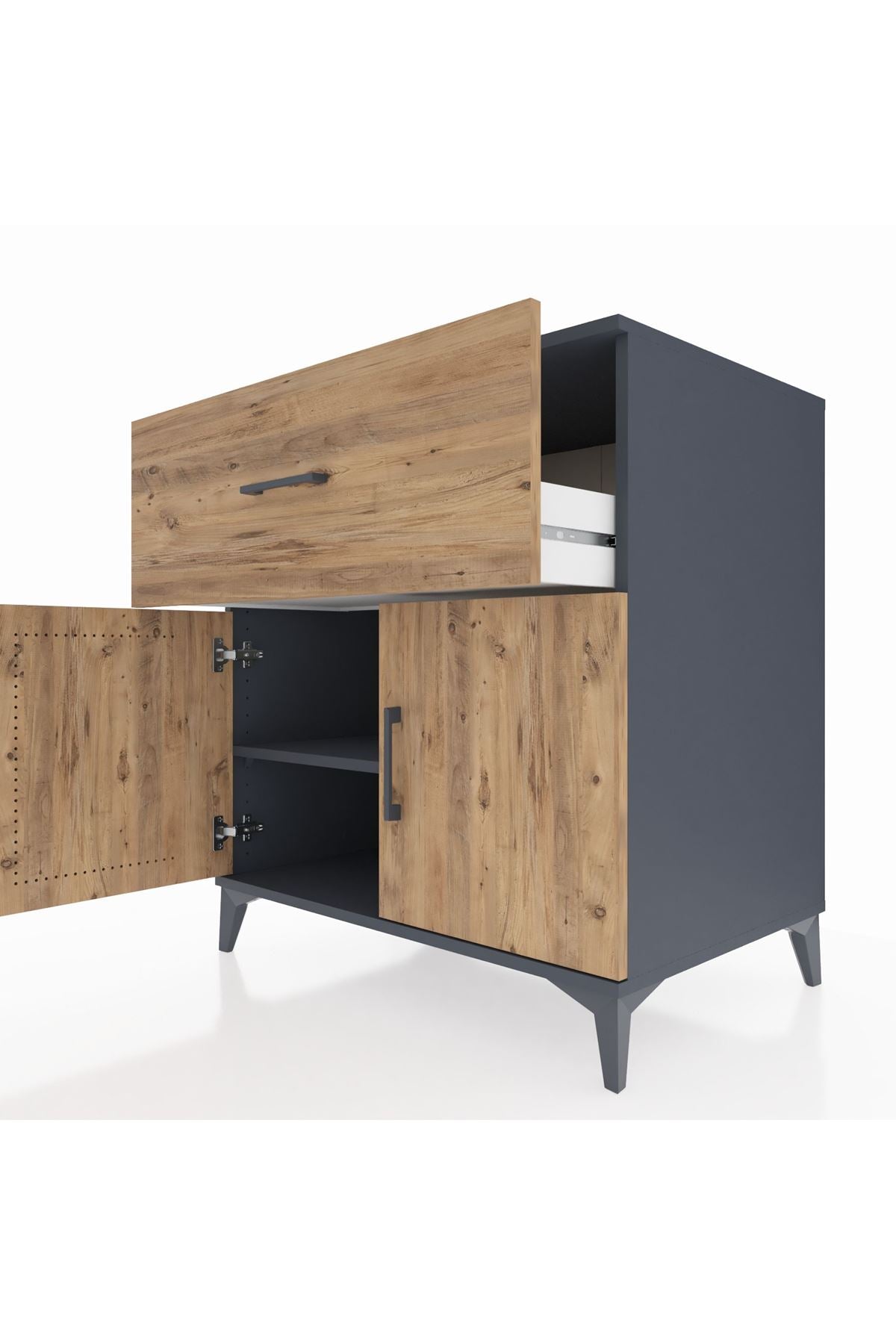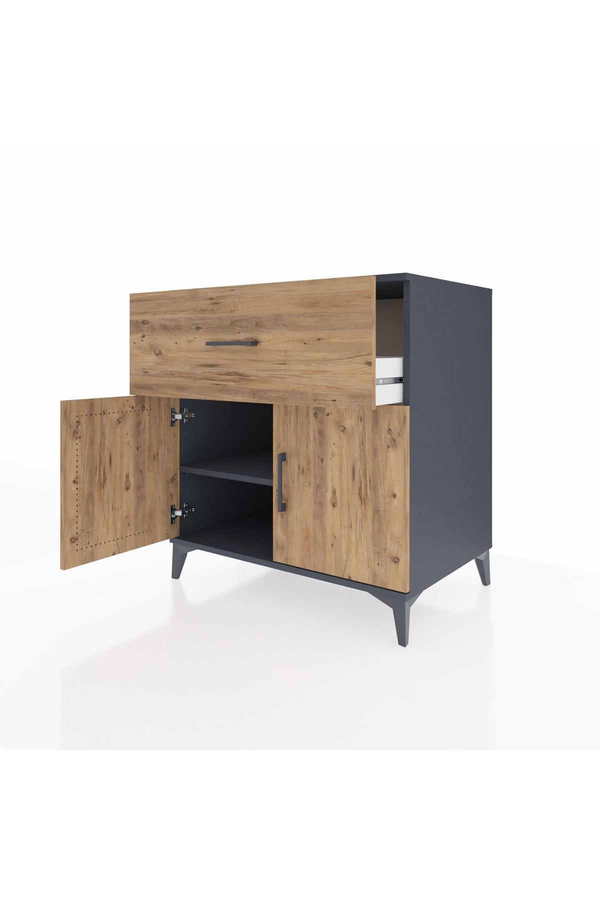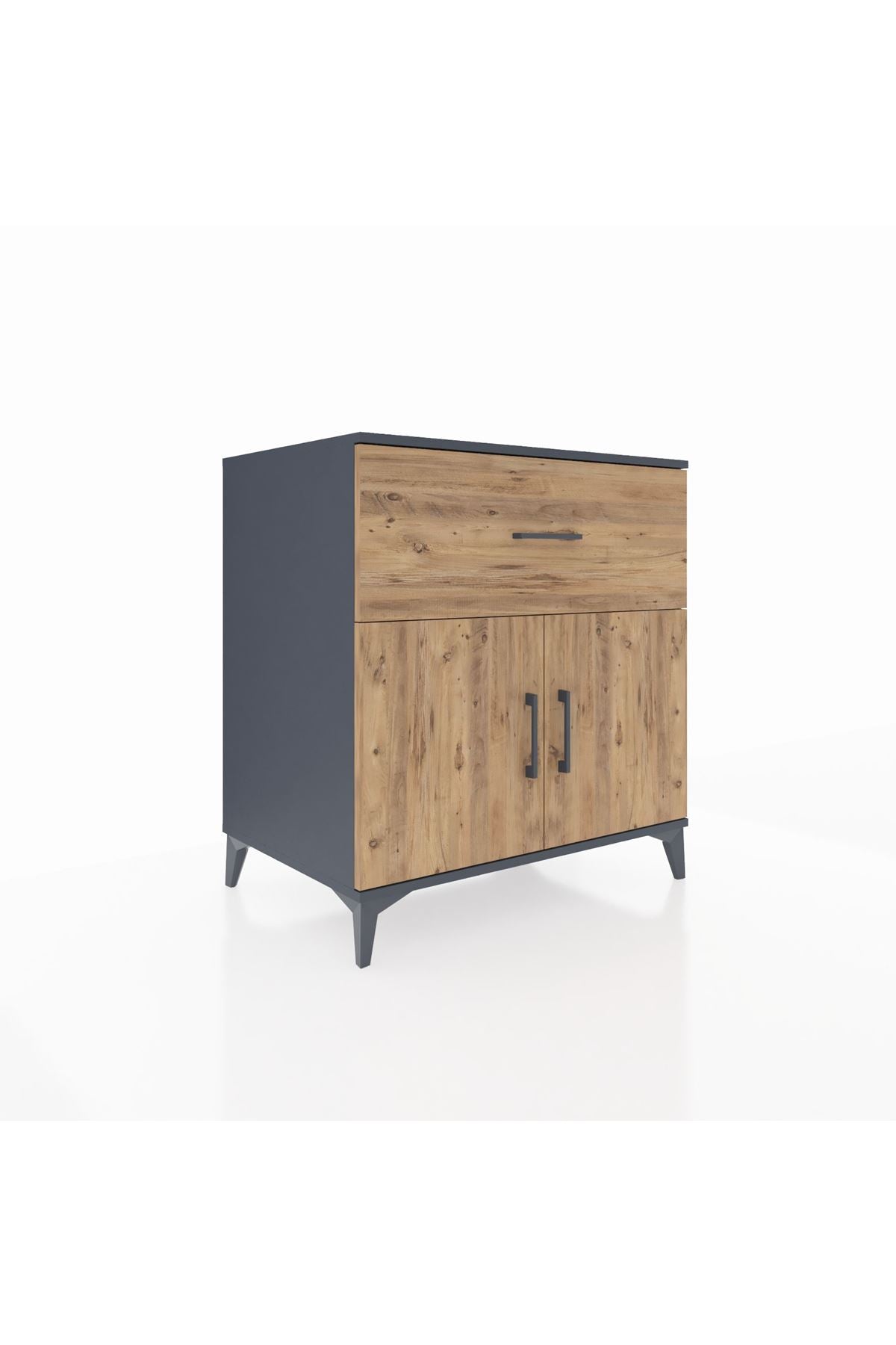 Kronos Şifonyer Tek Raflı Tek Çekmeceli 2 Kapaklı 88x59x96 Antrasit-Çam