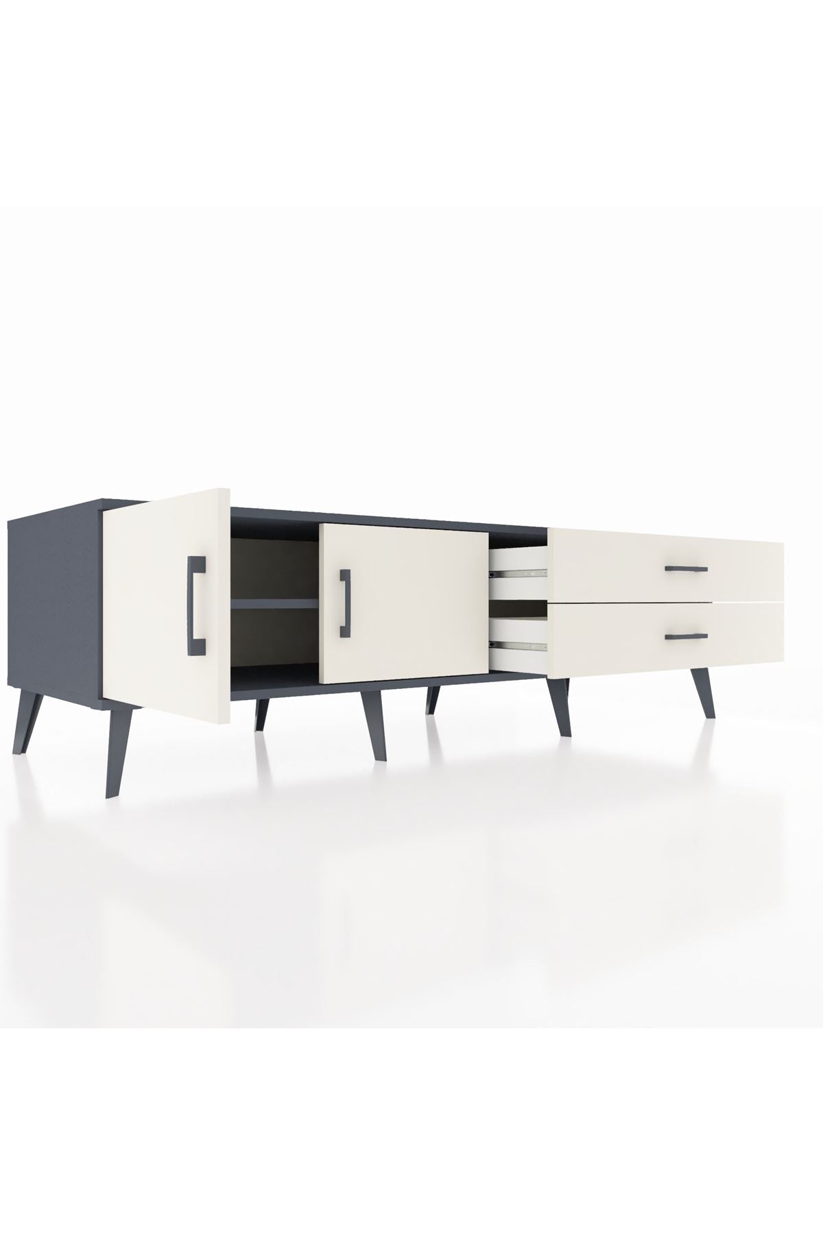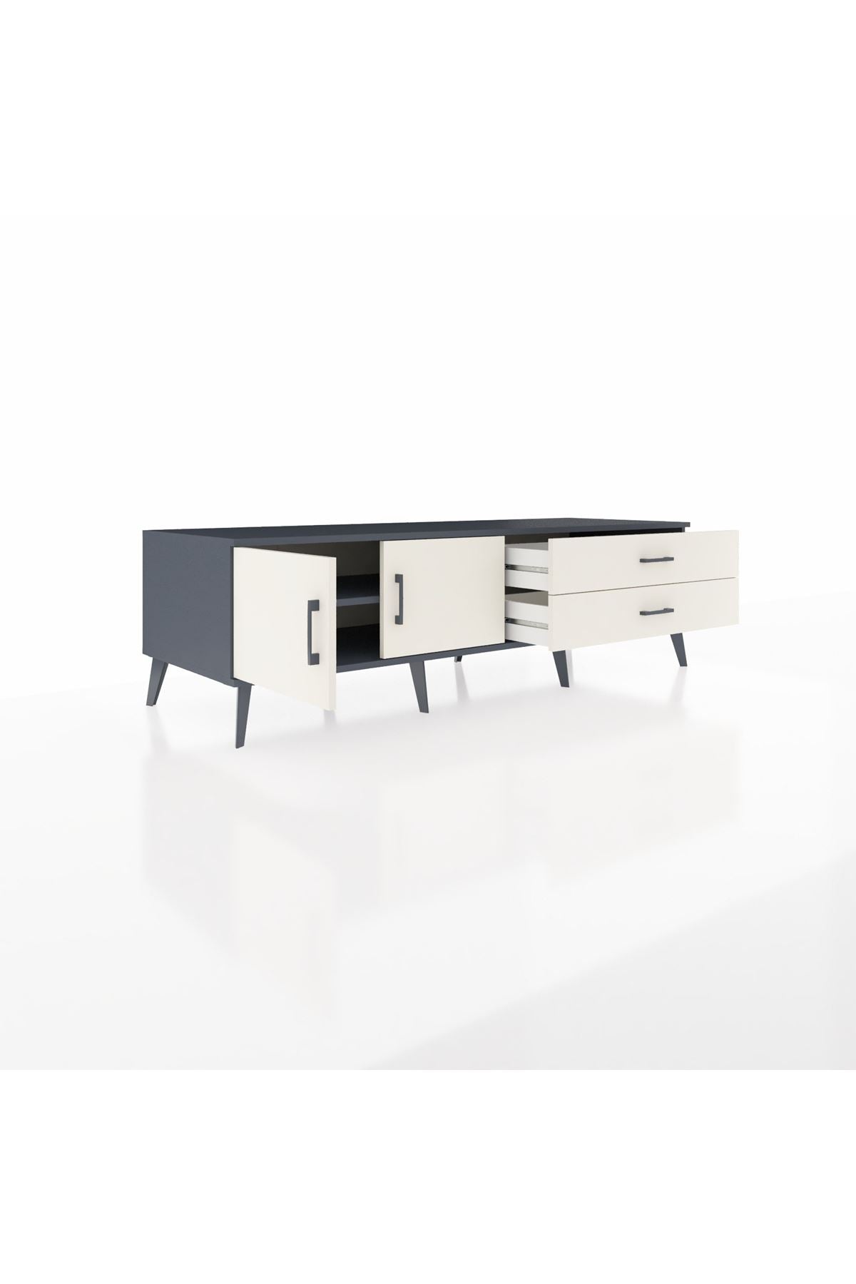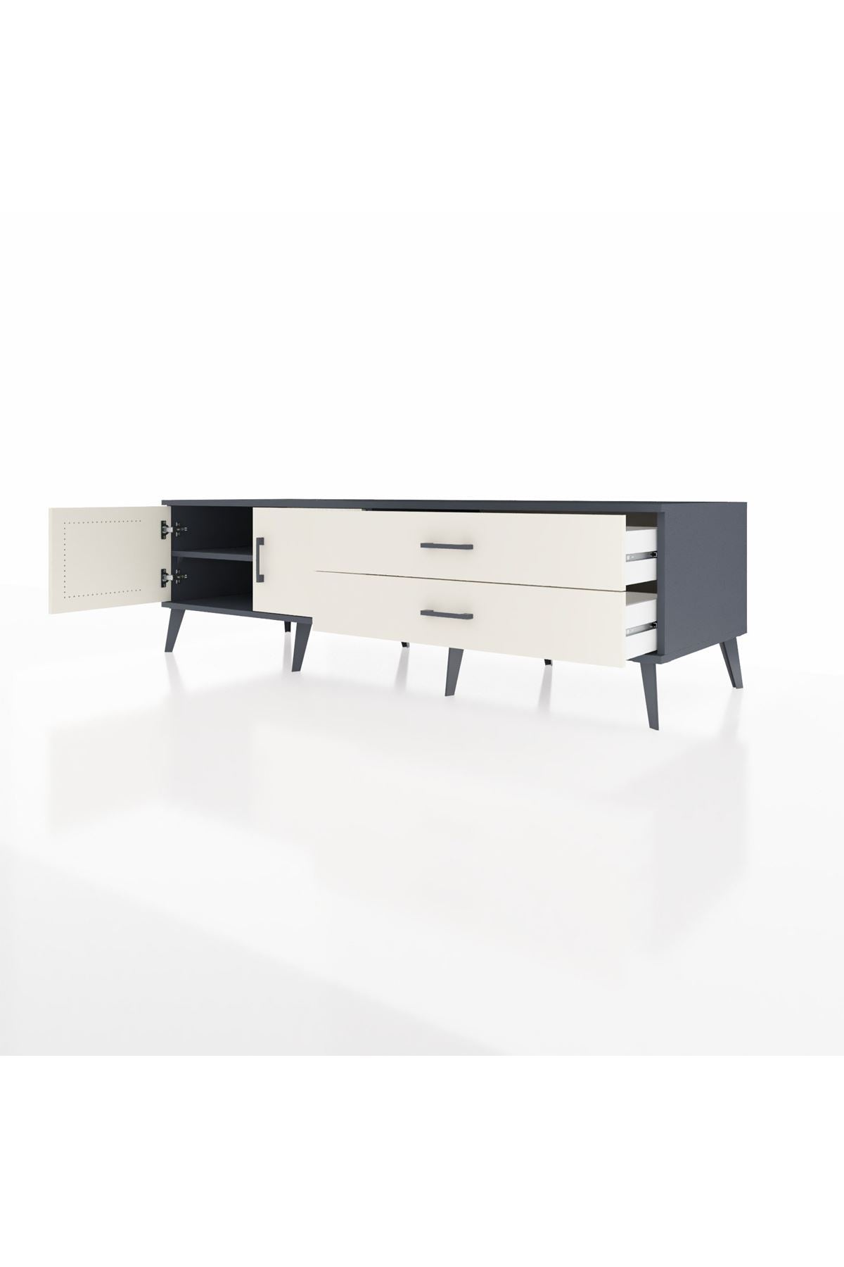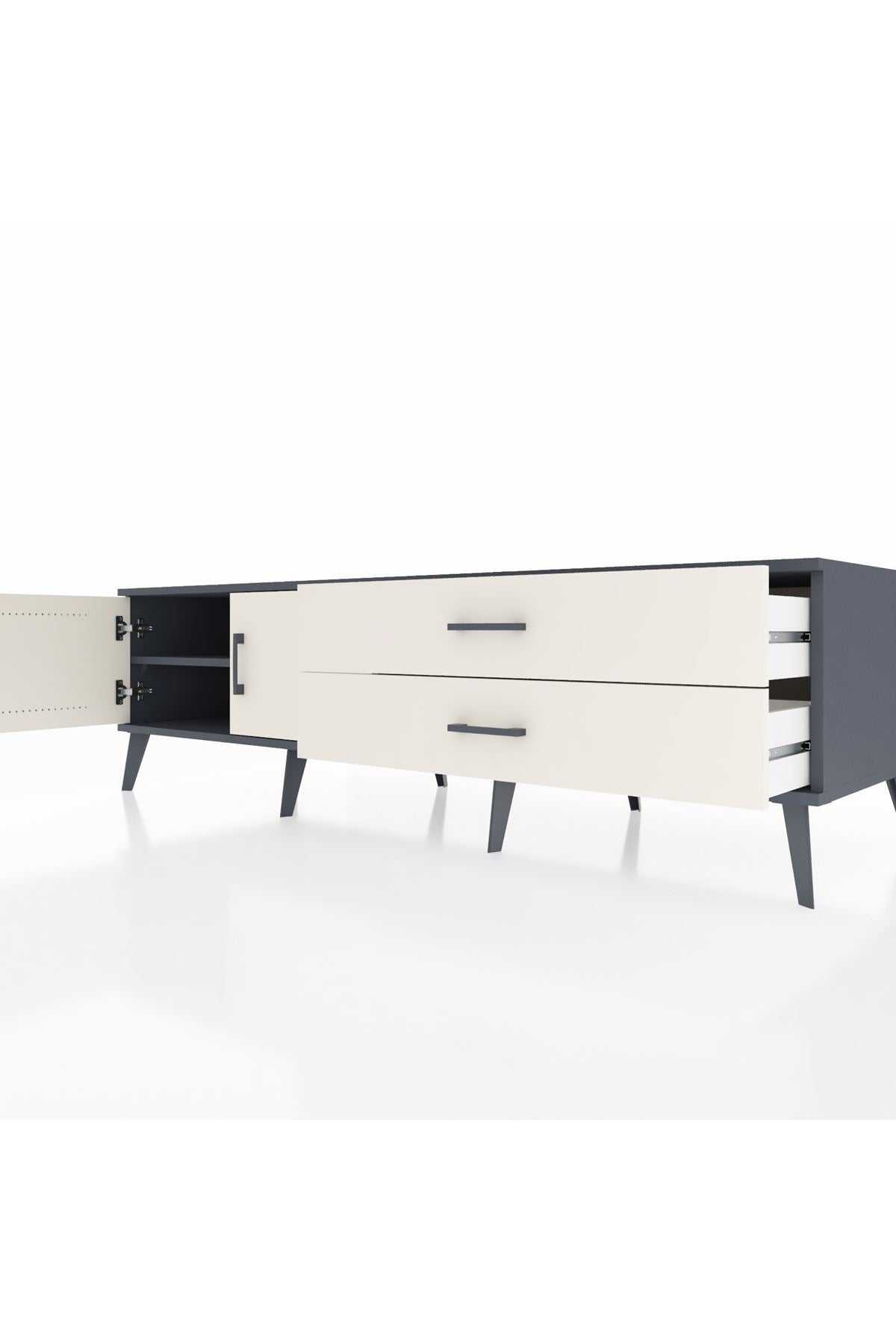 Kronos TV Ünitesi Tek Raflı 2 Çekmeceli 2 Kapaklı 176x59x51 Antrasit-Aytaşı/Aytaşı
