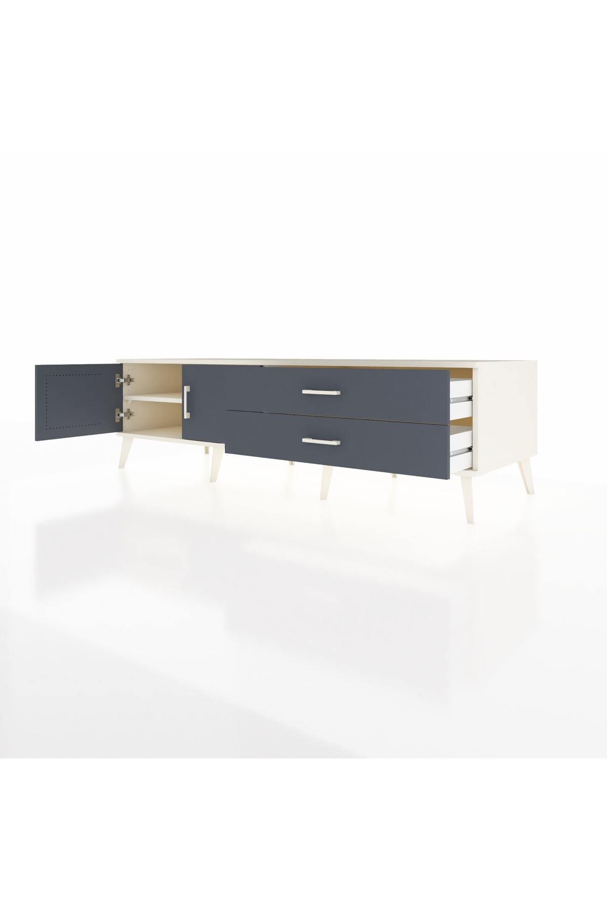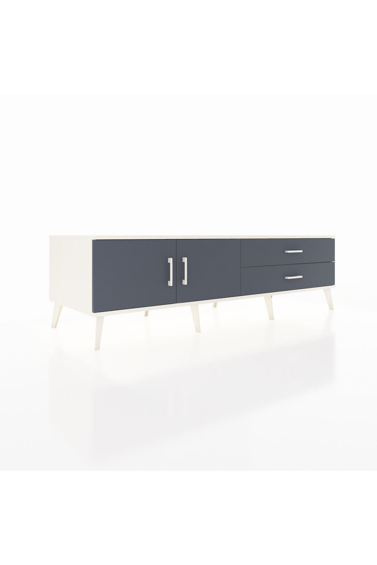 Kronos TV Ünitesi Tek Raflı 2 Çekmeceli 2 Kapaklı 176x59x51 Aytaşı-Antrasit/Antrasit