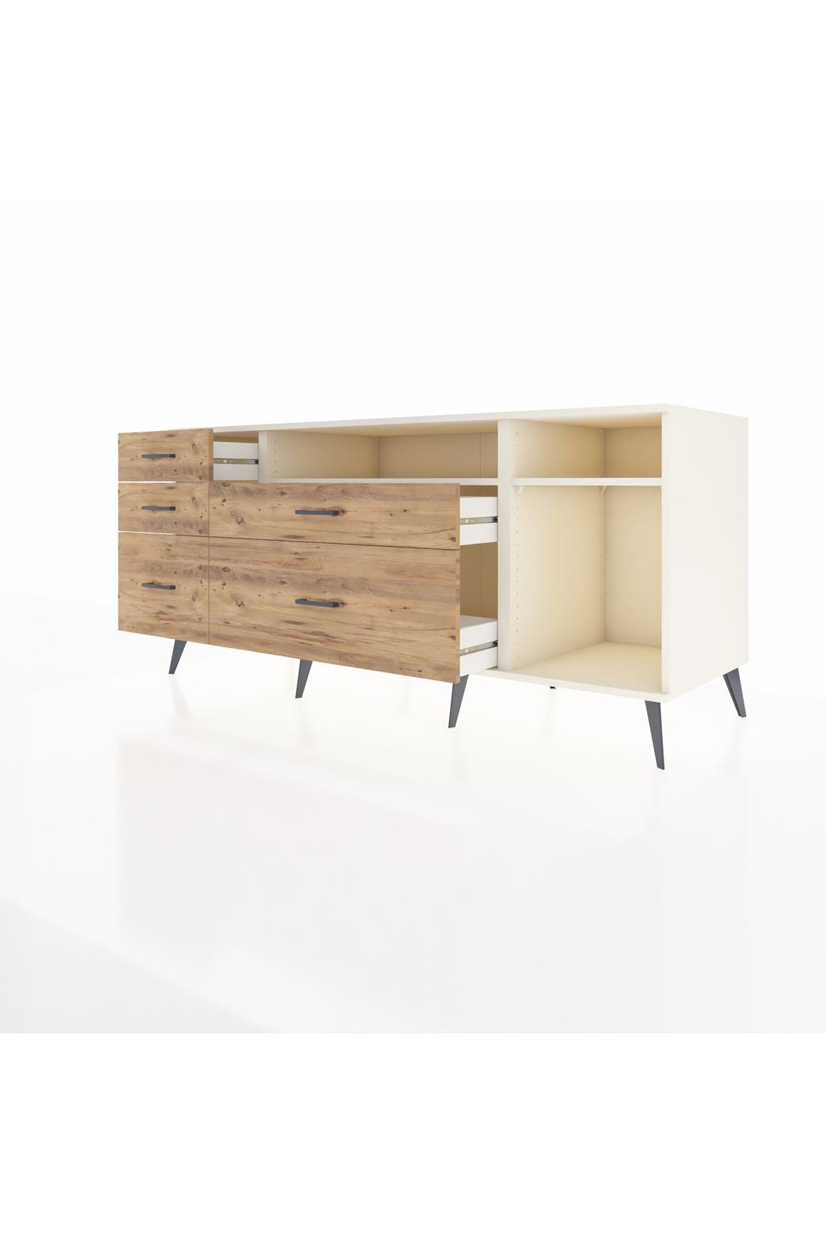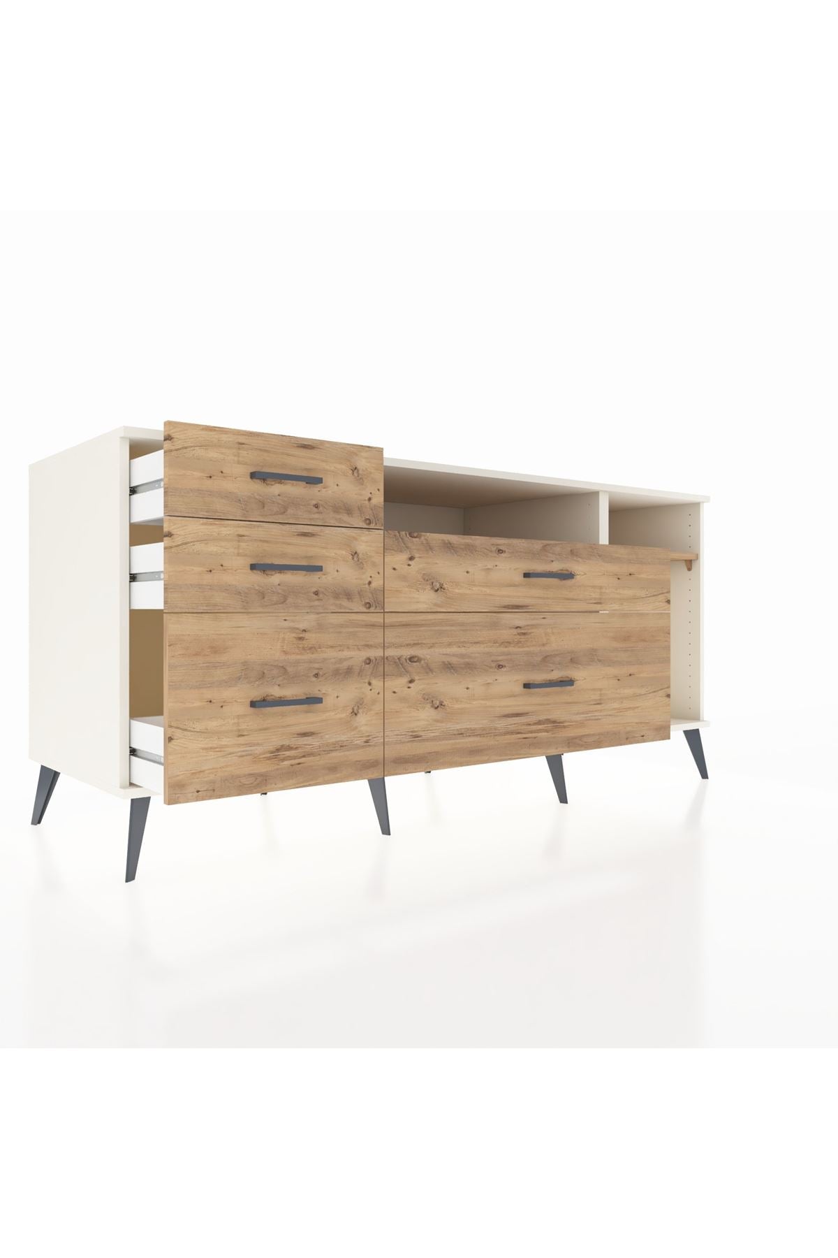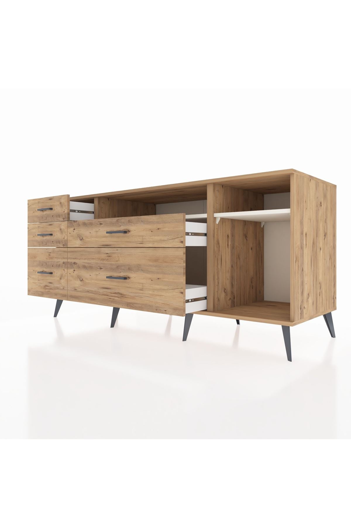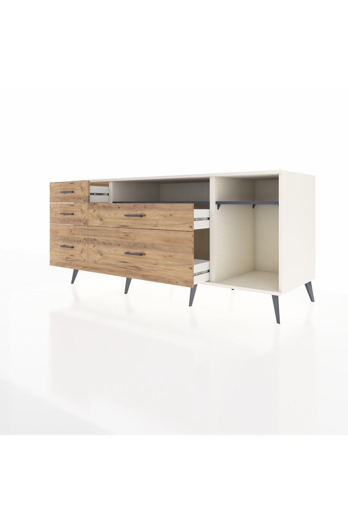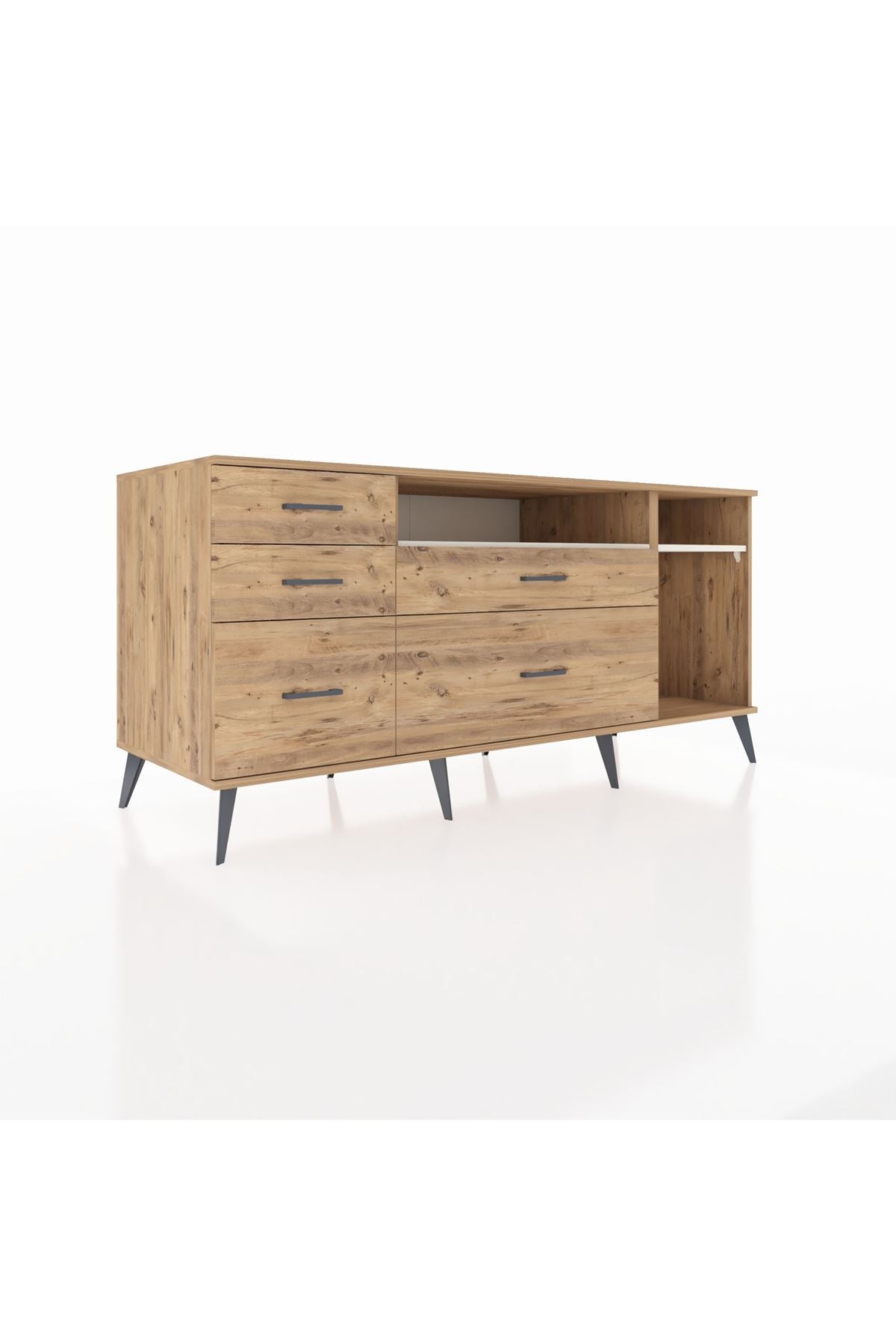 Kronos Konsol 2 Raflı 5 Çekmeceli 176x59x83, evinizin farklı odalarında kullanabileceğiniz çok yönlü bir mobilyadır.